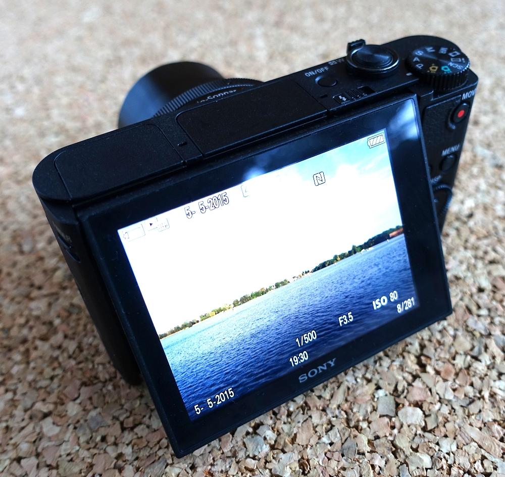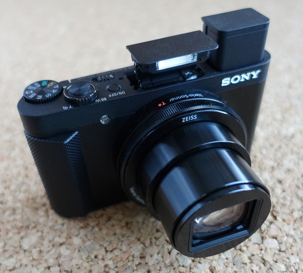 Der elektronische Sucher ist eine wesentliche Erleichterung bei hellem Sonnenlicht. Gegenüber dem Vormodell DSC-HX50 (201, MPix) ist der Sensor "nur noch" 18.2 MPix groß.