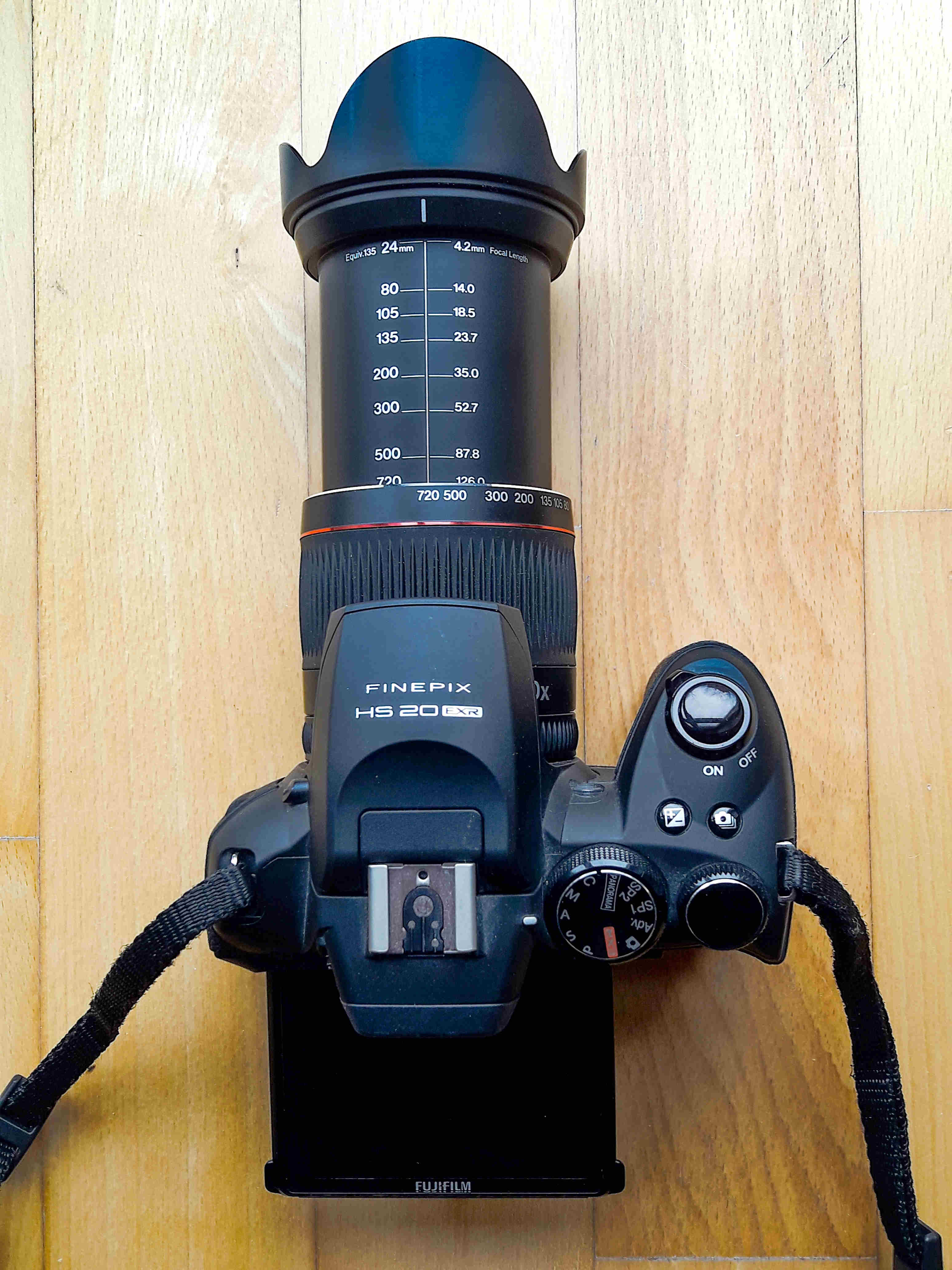 Fujifilm FinePix HS20EXR 2011 bis Ende 2012 CMOS-Sensor 1/2" 6,4 x 4,8 mm (Cropfaktor 5,4) 16,0 Megapixel (effektiv) Pixelpitch 1,4 µm Auflösung 4.608 x 3.456 Pixel (4:3) 3.264 x 2.448 Pixel (4:3) 2.304 x 1.728 Pixel (4:3) Bildformate JPG, RAW (.RAF) Brennweite 24 bis 720 mm (35mm-equivalent) 30-fach Zoom Schärfebereich 50 cm bis unendlich (Weitwinkel) 500 cm bis unendlich (Tele) Makrobereich 10-300 cm (Weitwinkel) 200-500 cm (Tele) Blenden F2,8 bis F11 (Weitwinkel) F5,6 bis F11 (Tele) Einzel-Autofokus, kontinuierlicher Autofokus, Flächen-Autofokus, Manuell, AF-Hilfslicht Monitor 3,0" TFT LCD Monitor mit 460.000 Bildpunkten Belichtungsmessung Matrix/Mehrfeld-Messung Belichtungszeiten 1/4.000 bis 4 s (Automatik) Programmautomatik, Blendenautomatik, Zeitautomatik, Manuell Belichtungskorrektur -2,0 bis +2,0 EV Lichtempfindlichkeit ISO 100 bis ISO 3.200 (manuell) Gewicht 716 g (inkl. 4 Mignon AA)) Abmessungen B x H x T 130 x 91 x 126 mm