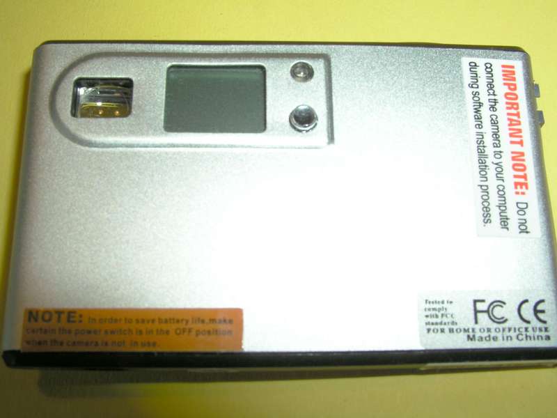 Wie flach kann man eine Digitalkamera im beginnenden Zeitalter winziger Handy-Kamera-Module machen, wenn es nicht darauf ankommt, ob sie noch erkennbare Fotos macht? - Sehr flach, in jeder Hinsicht! Daten: Baujahr: ca. 2002 Baugleichheiten: Winait Super Slim Super Easy, KD2101 von Shenzen Demeilai Electronics, Mustek CD130BT Sensor: CMOS Objektiv: 4.5mm Brennweite, F 2.8 Verschluß: 1/6 bis 1/15.000 angegeben Blitz: keiner möglich Sucher: Durchsichts-Sucher Selbstauslöser: 10sec Format: 640x480 Pixel (0.3 Megapixel) Speicher: 8MB festeingebaut, Datenverlust bei Tiefentladung Abmessungen, Gewicht: 8 x 5 x 0.75 cm, 32 Gramm Video: AVI, 17 sec. 320x240 Stromversorgung: festeingebauter LiIon Akku, USB