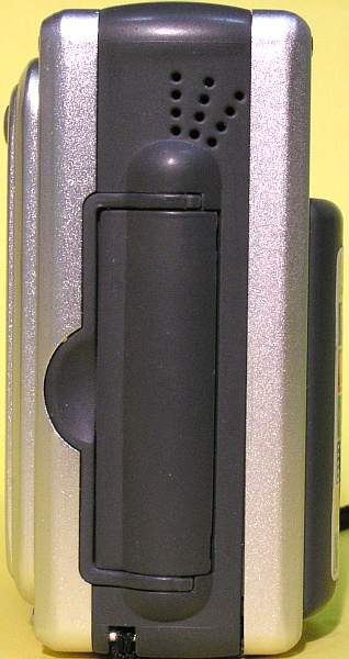 Die Klappe zum Kartenleser für Smartmediakarten, darüber das Mikrofon für die Video- und Audioclips.