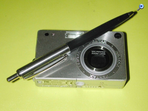 Hallo, die Pentax Optio S ist eine Kompaktkamera mit 3,2 Megapixel und optischem 3fach-Zoom. Mit einer gemessenen Größe von 83x52x20mm und glatten Seitenflächen kann sie z.B. beim Spaziergang überall in irgend einer Tasche mit, zumal sie in eine Blechdose von "Fishermans Friend" und ähnliche perfekt hineinpasst.