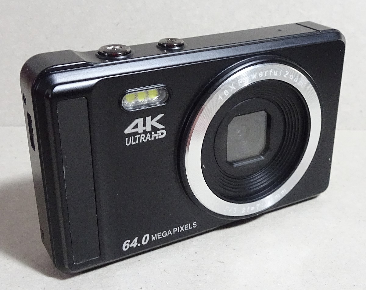 hier eine preiswerte Digitalkamera mit 64 MPix für einen Preis unter 60 Euro (Made in China), die in der Werbung ohne Hersteller- und Modellnamen auskommen muss. Dieser Typ von Kameras taucht so oder ähnlich immer wieder in Online-Angeboten auf. Immerhin wird die Kamera als Kinder-, Tenager-, Erwachsene-, Anfänger-Kamera vorgestellt.