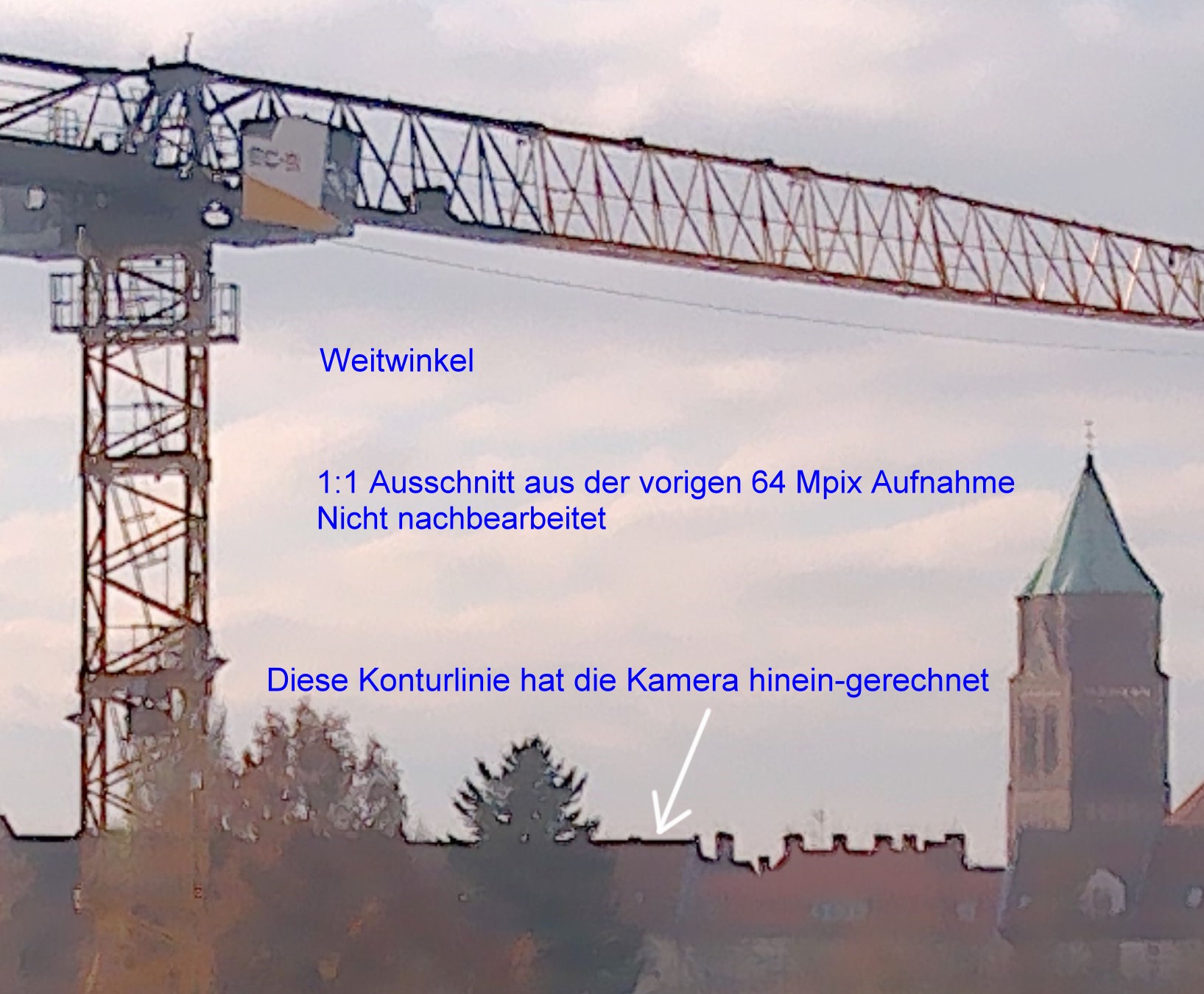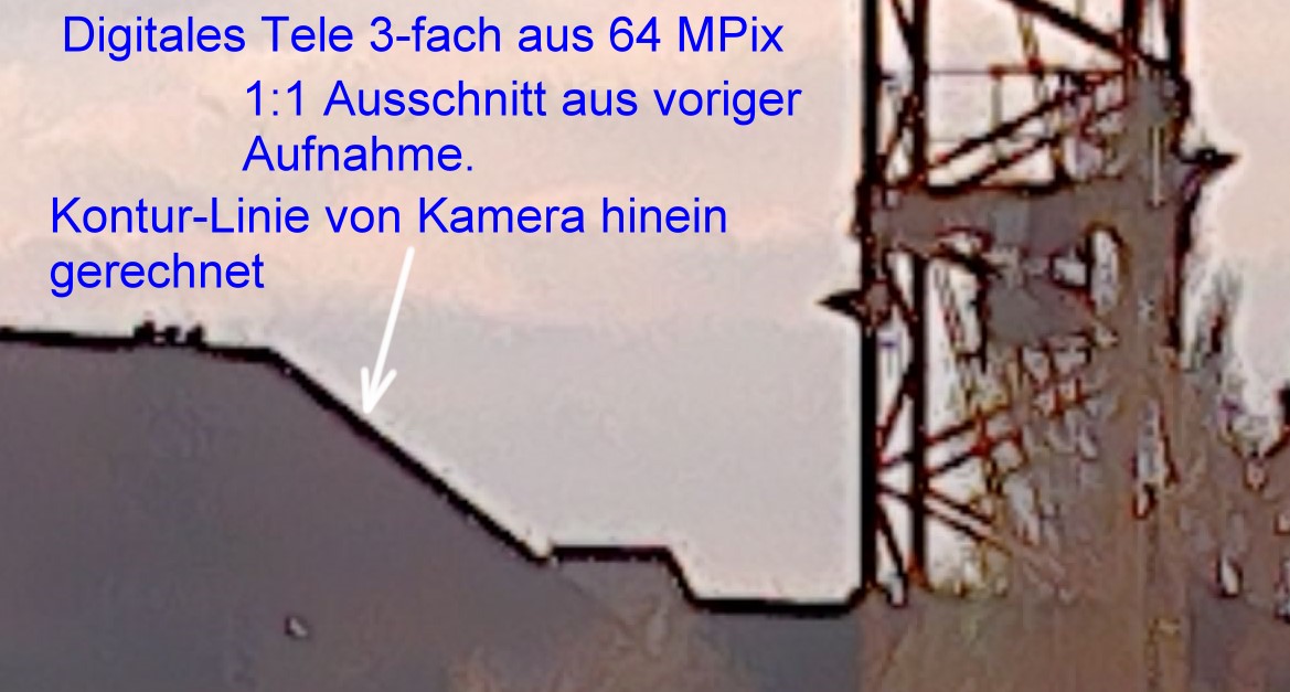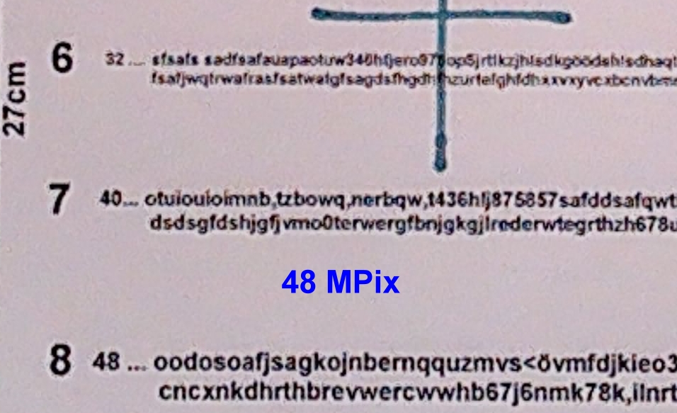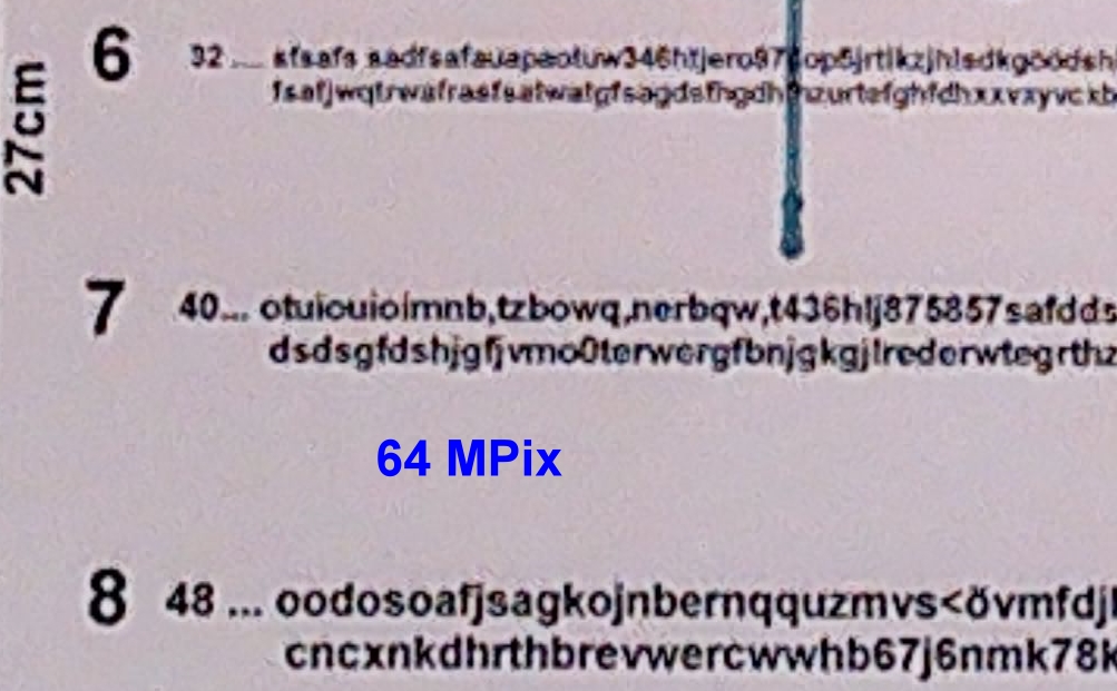 Dabei ist es so, dass tatsächlich die 64 MPix die beste Auflösung erreichen. Man sieht aber auch, wie die Kamera herum-rechnen muss und dass doch ganz schon komprimiert wird.