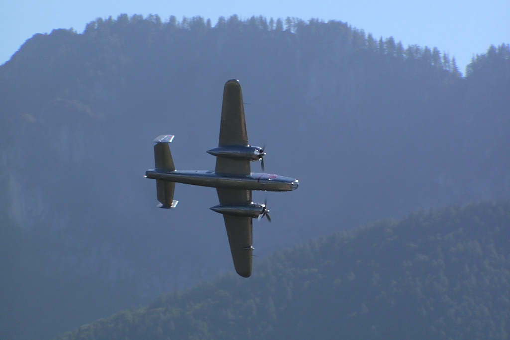 Das Bild des Fliegers in der Luft ist das einzige halbwegs scharfe aus einer ganzen Serie von völlig fehlfokussierten Aufnahmen.