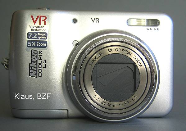 nachfolgend stelle ich die Digitalkamera Nikon COOLPIX L5 vor. Sie stammt aus dem Jahr 2006 und besitzt ein Kunstoffgehäuse, wobei Objektivring sowie ein Ausschnitt des Oberteiles aus Metall gefertigt sind. Erwähnenswert bleibt noch ein "Dokumentmodus", der es ermöglicht, scharfe Aufnahmen von Texten oder Aufzeichnungen auf Wandtafeln oder Ausdrucken anzufertigen. Die Kamera stellt dabei die Bildmitte scharf. Aufgrund der 2 Standardbatterien (Mignon, AA) fällt die Kamera etwas größer aus als solche mit Spezialakkus (z.B. IXUS)