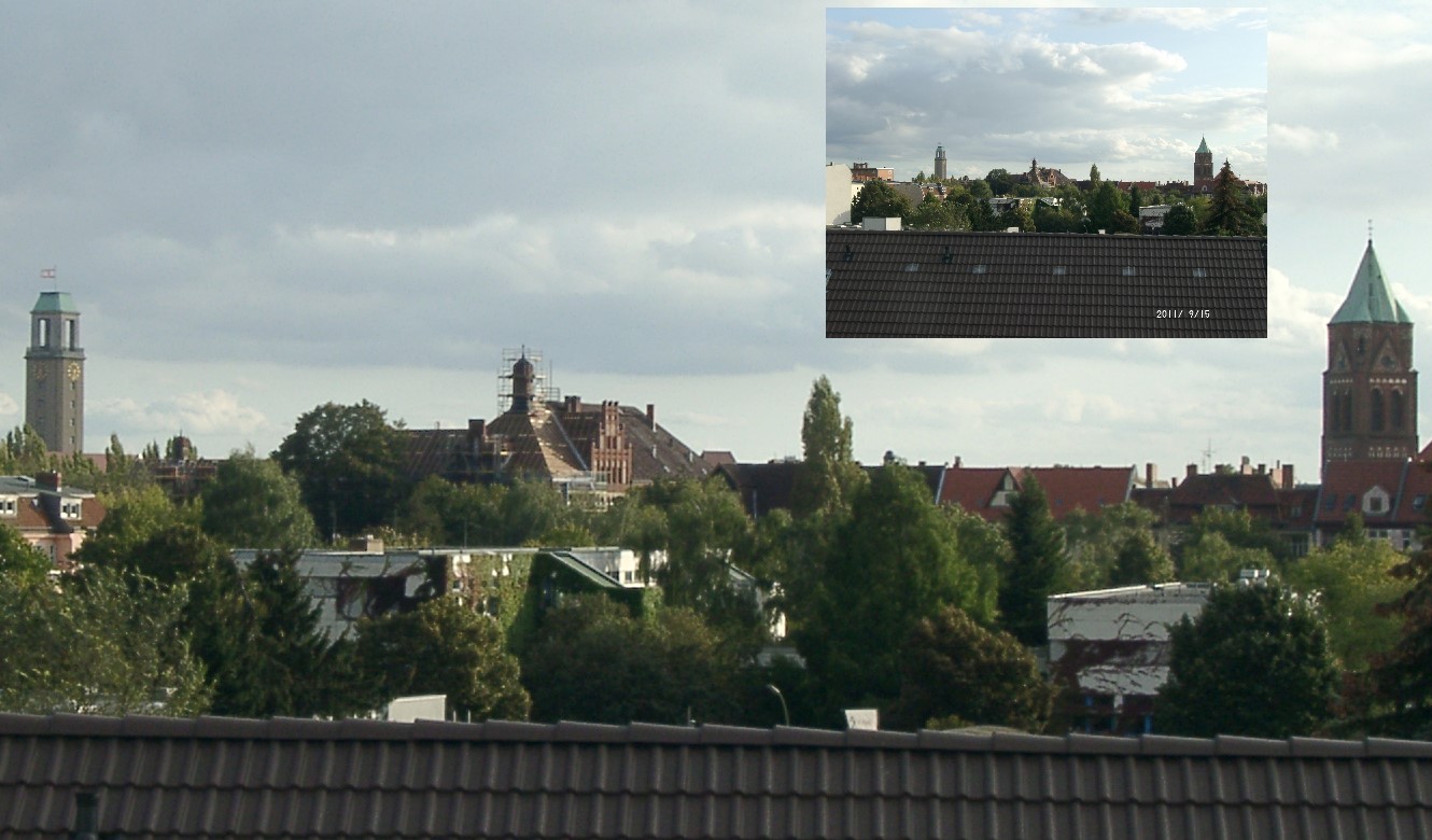 Ein Bildauschnitt, nicht nachbearbeitet mit Insert des Original-Photos. Beim Neuspeichern mit 90 % JPG-Qualität.