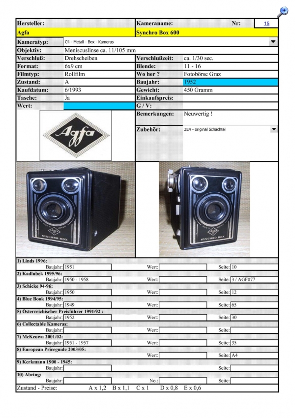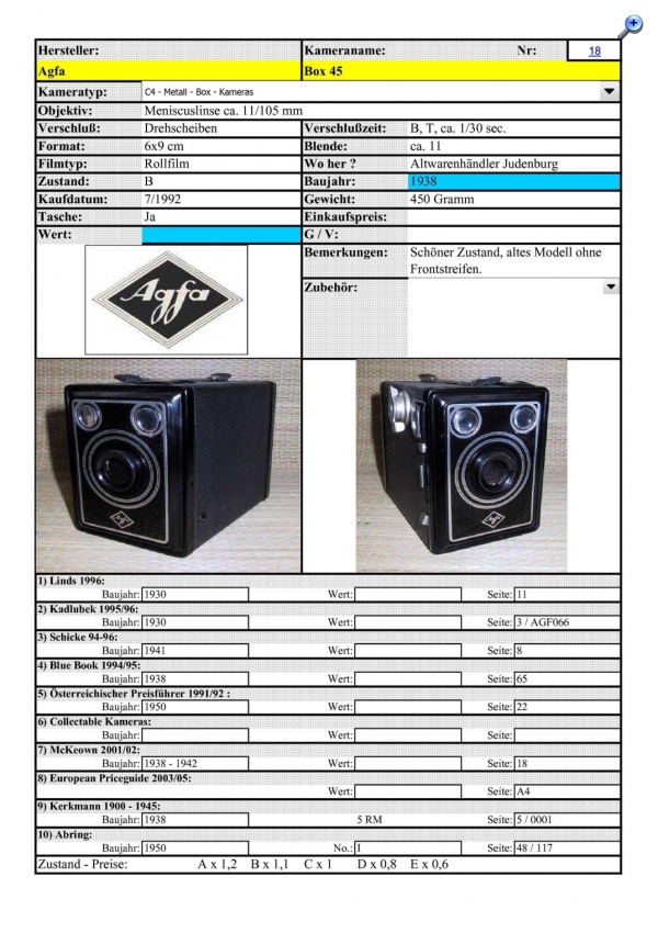 Mein Vater hatte so eine Agfa-Box. Das Bild von mir im zarten Alter von 2 Jahren ist damit 1949 entstanden. Leider ist die Box bei einer Übersiedlung verlorengegangen.
