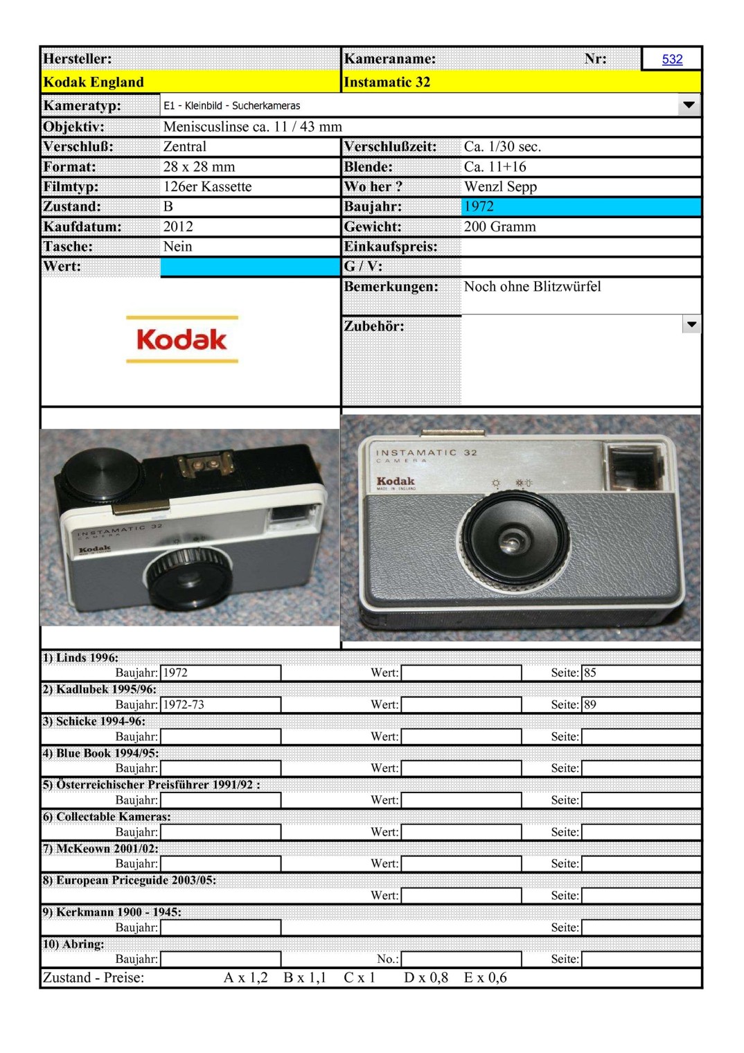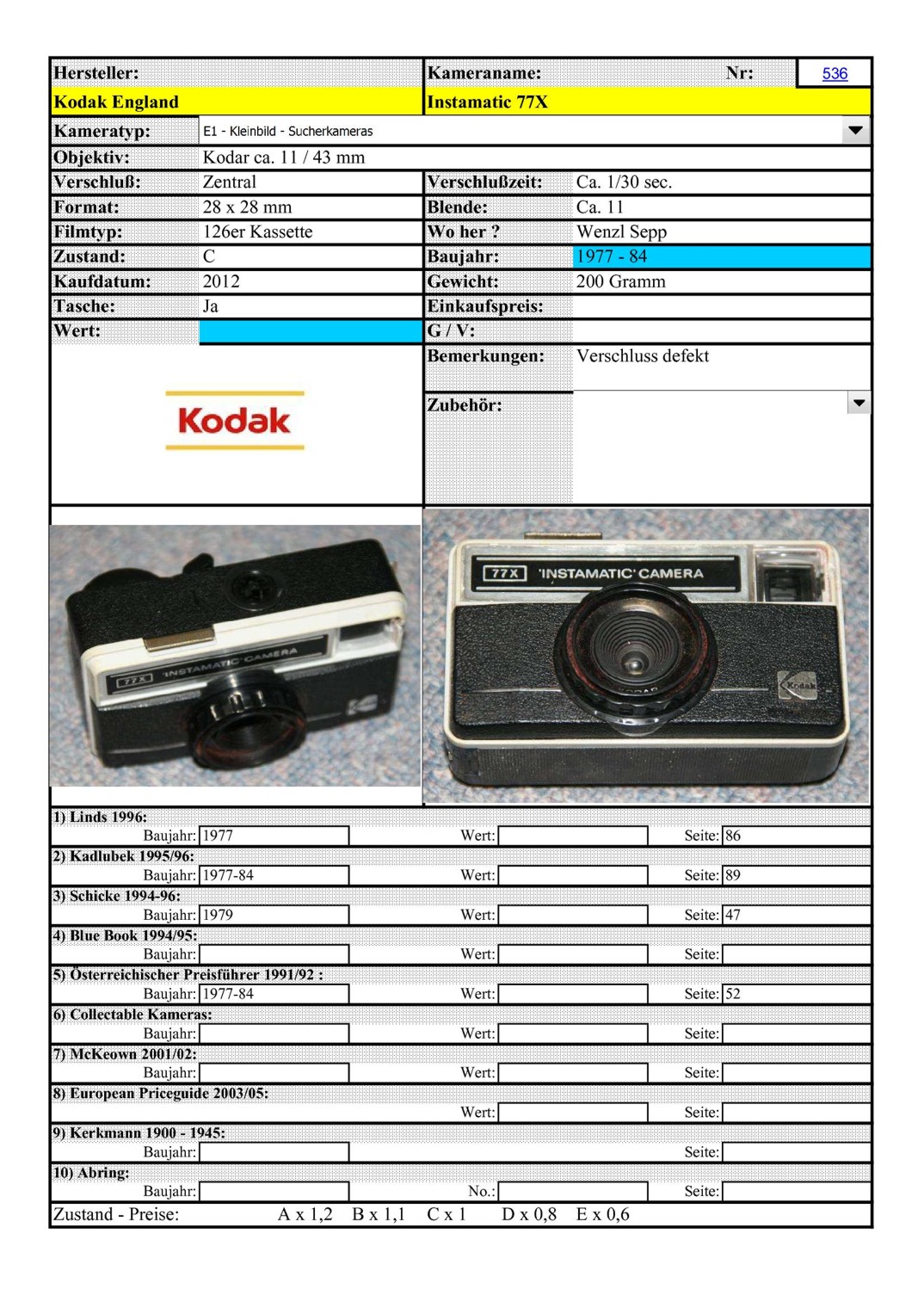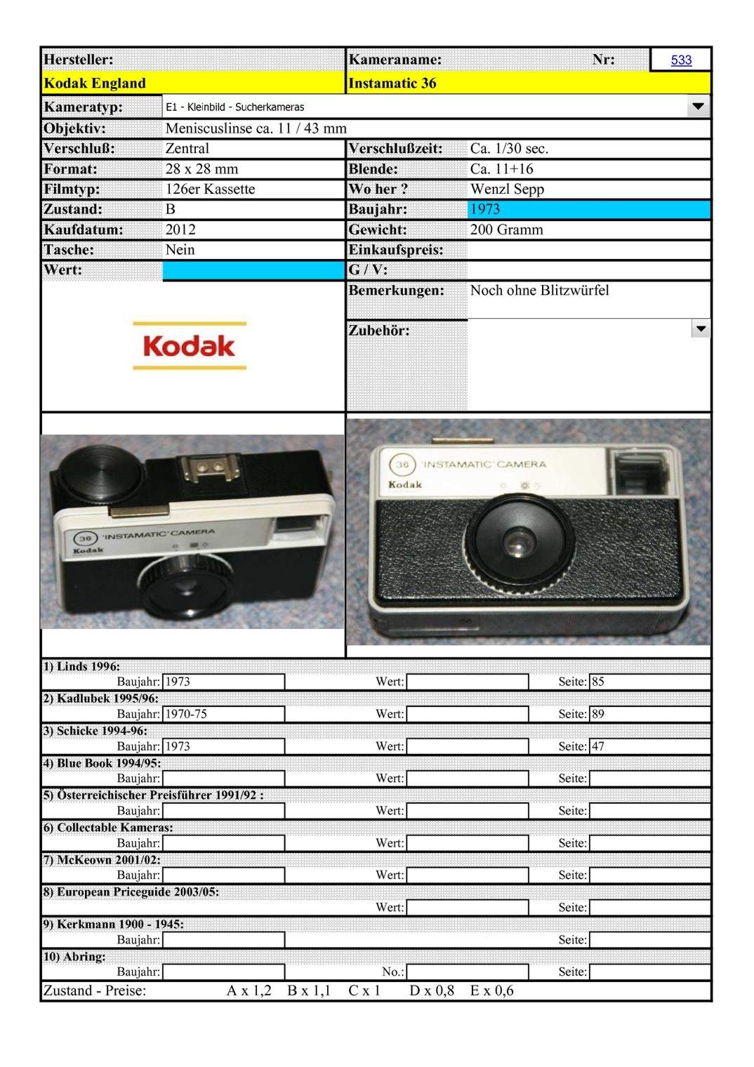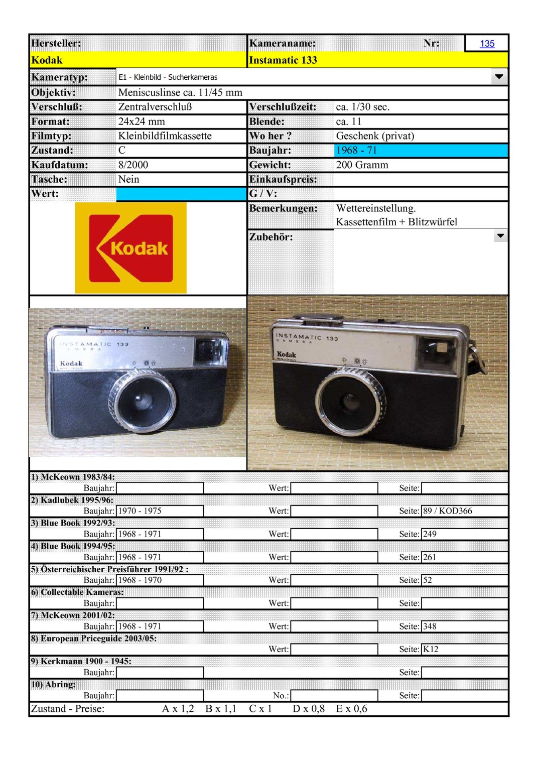 Eine Anmerkung zu deinen Datenblättern: Die Instamatics hatten keine verstellbare Blende aber zwei Verschlusszeiten.