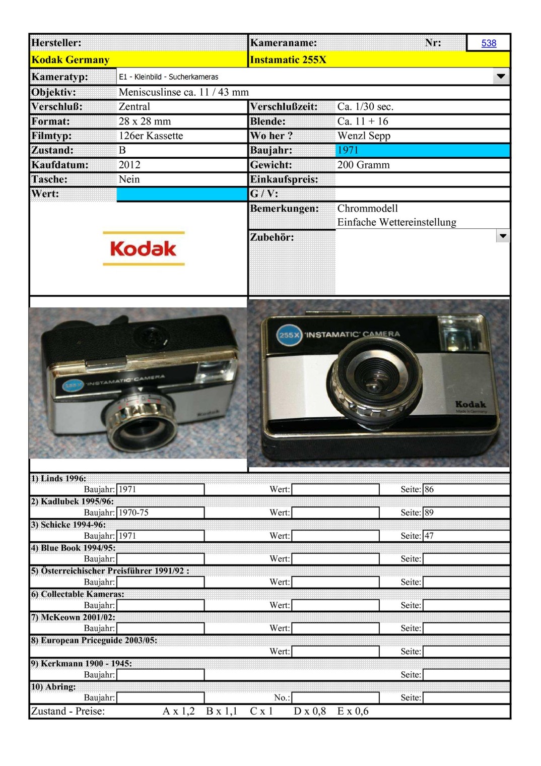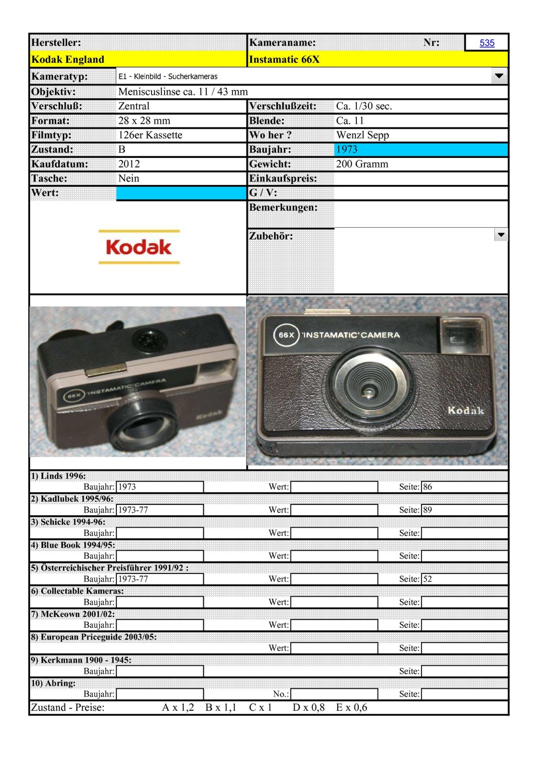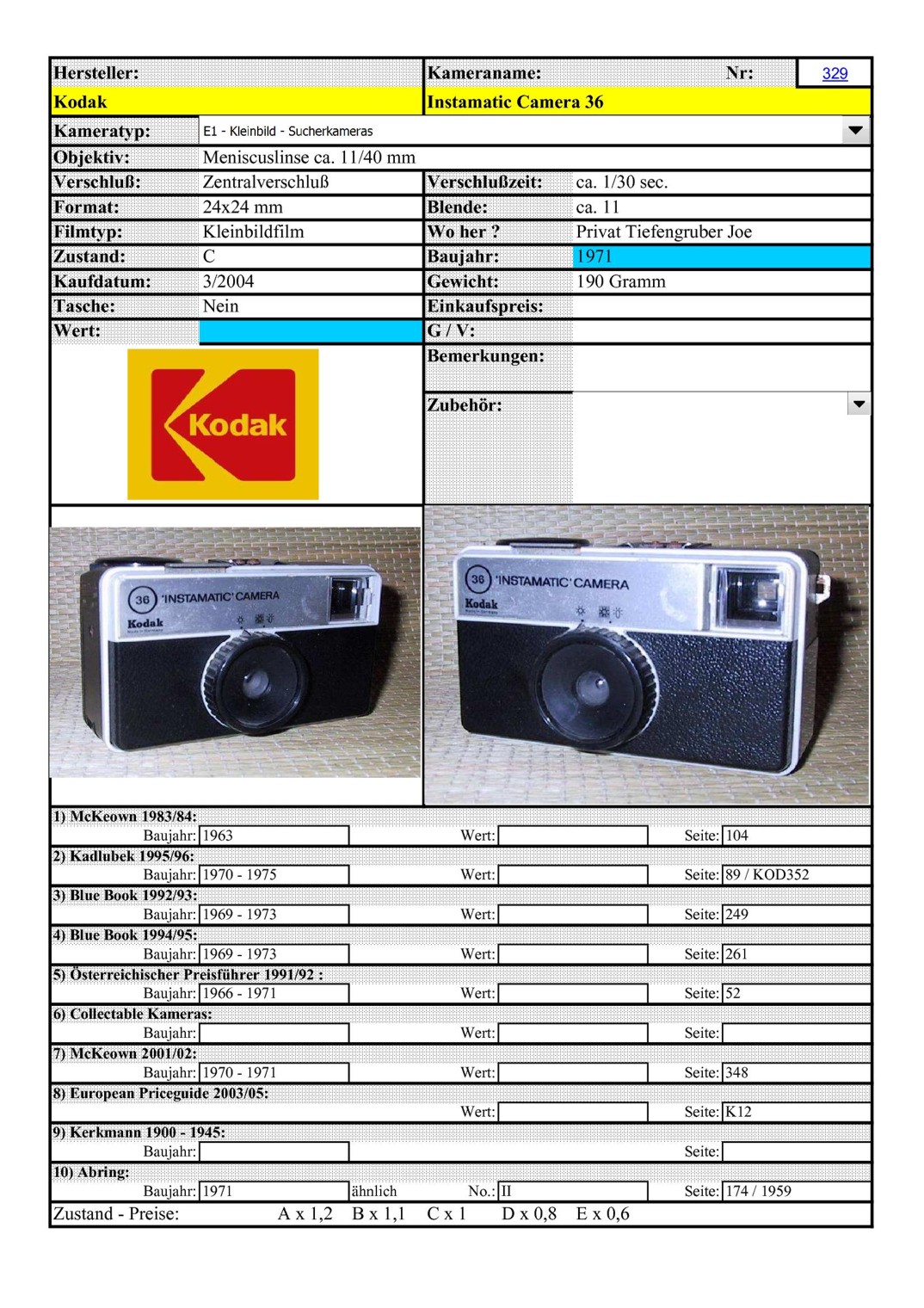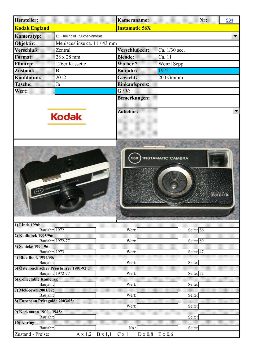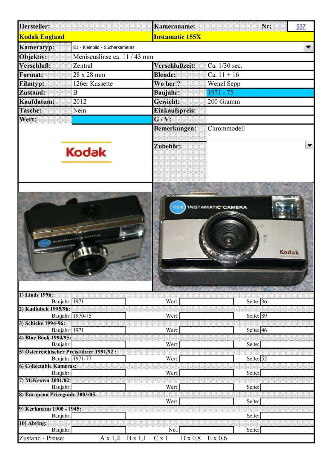 Eine Anmerkung zu deinen Datenblättern: Die Instamatics hatten keine verstellbare Blende aber zwei Verschlusszeiten.