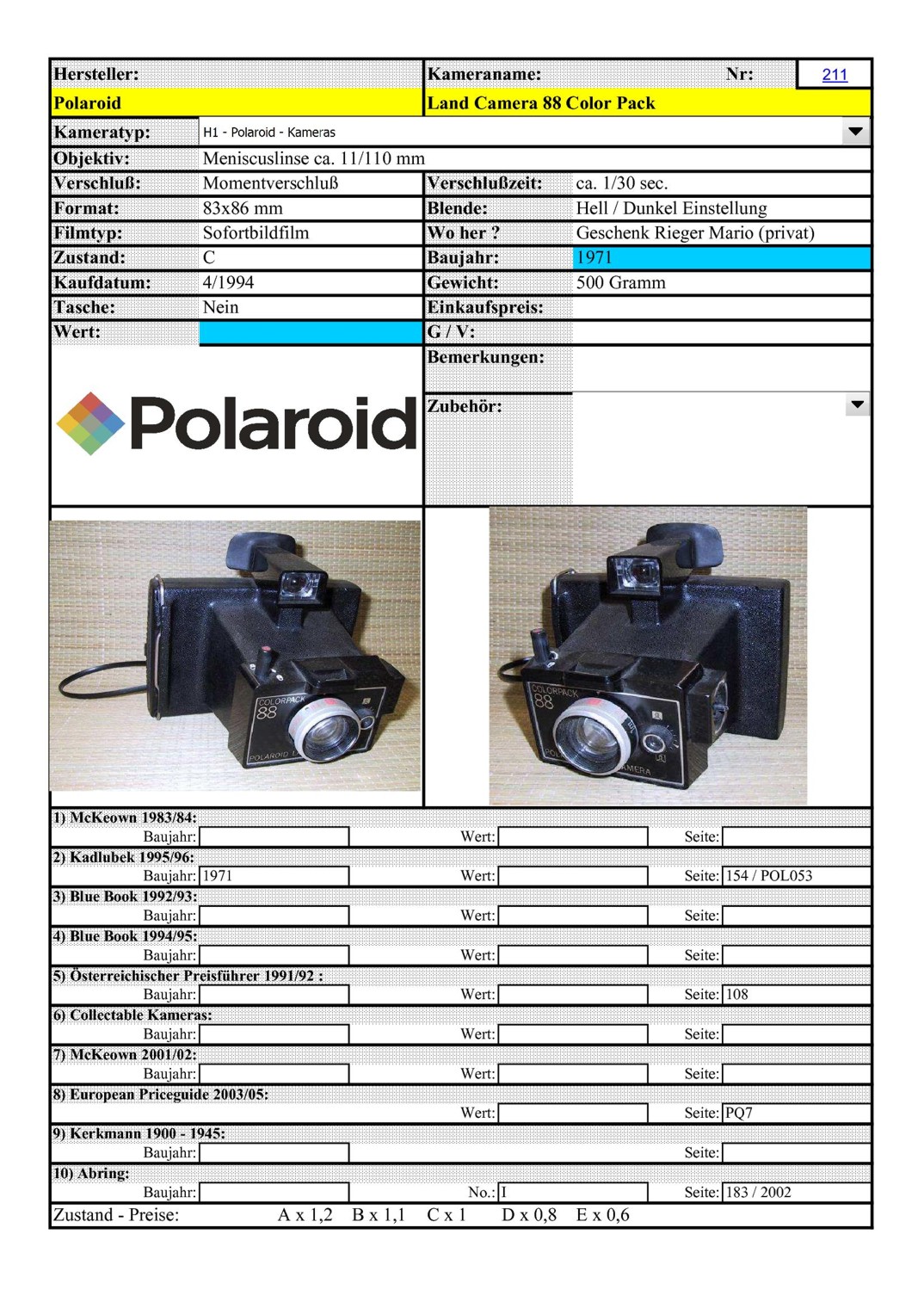 SX70, Land Camera 1500, Instand 10, 88 Color Pack, Land Camera ZIP