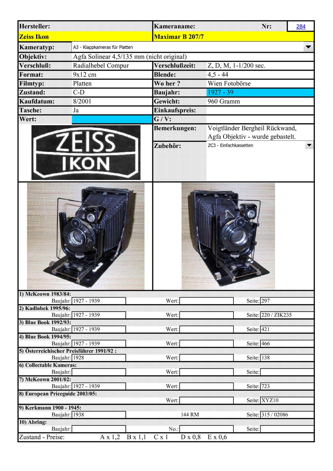 [..iIa..] Zeiss Maximar 207 Plattenkamera .