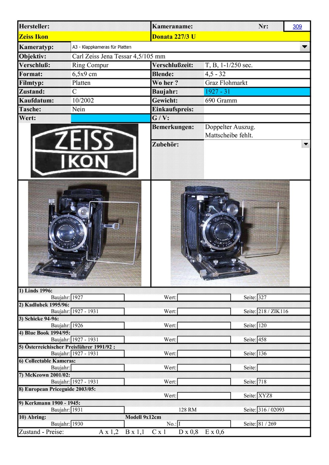 [..iIa..] Drei Zeiss Donata Plattenkamera-Varianten .