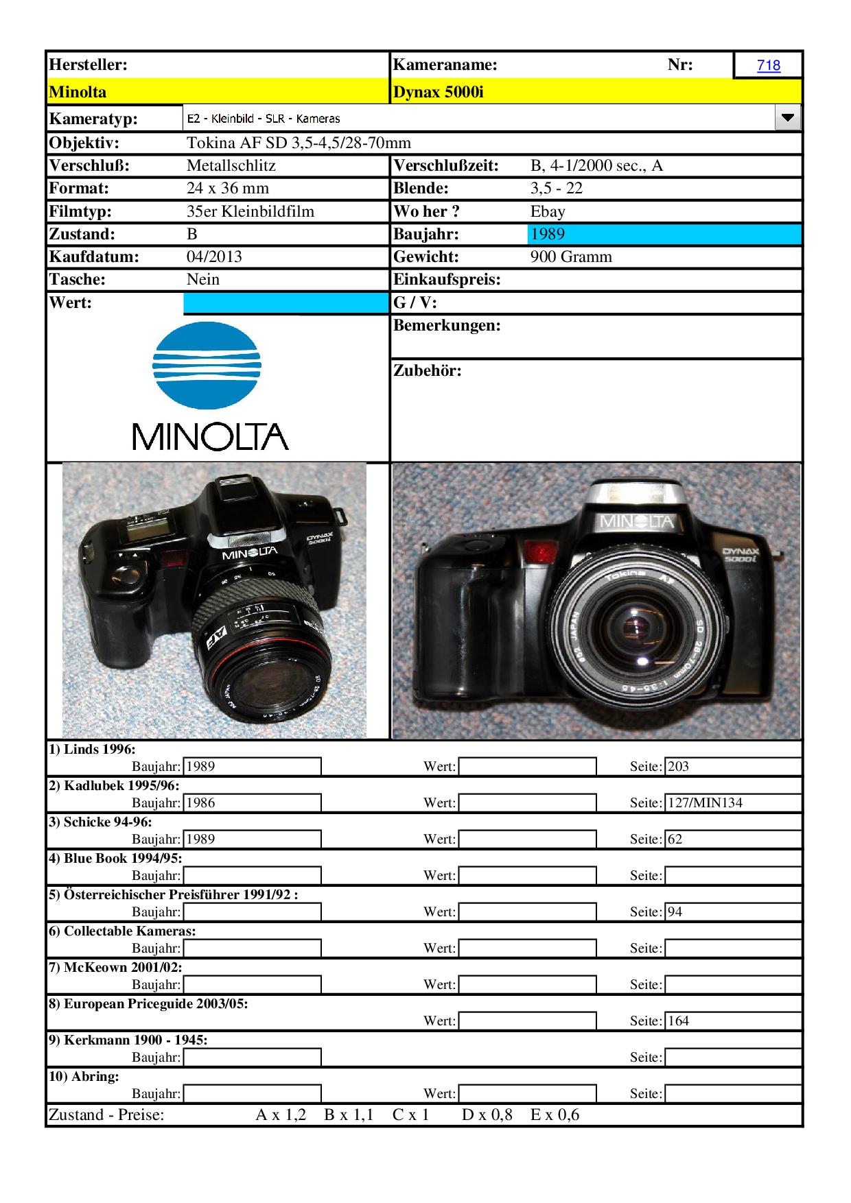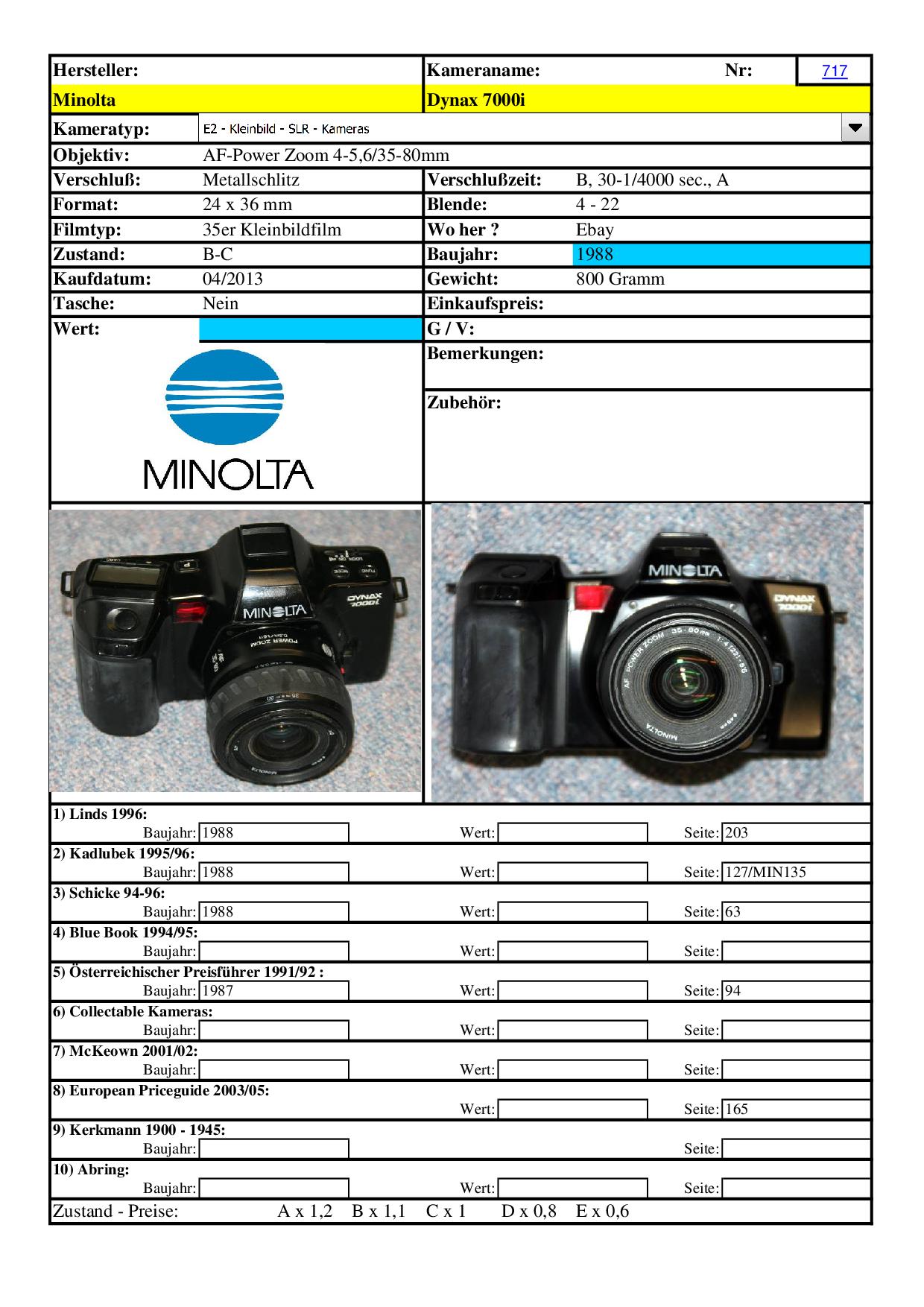 Gerade die Dynax Reihe von Minolta ist ein weites Sammlerfeld. (Man denke nur an die verschiedenen Chipkarten!)