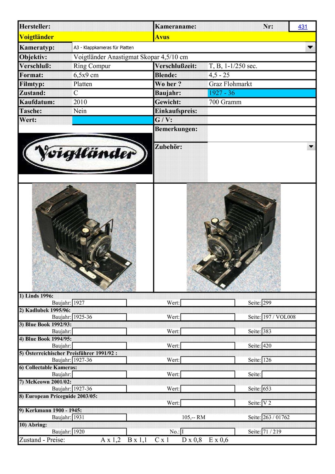 Die erste Avus kann nicht aus 1912 sein. Der Ring-Compur wurde ab erst ca. 1928-29 verwendet (Patent würde ein paar Jahre davor angemeldet). Wieder ein Blick auf die Seriennummer sollte hier bei der Datierung der Kamera helfen (auch beim zweiten Model).