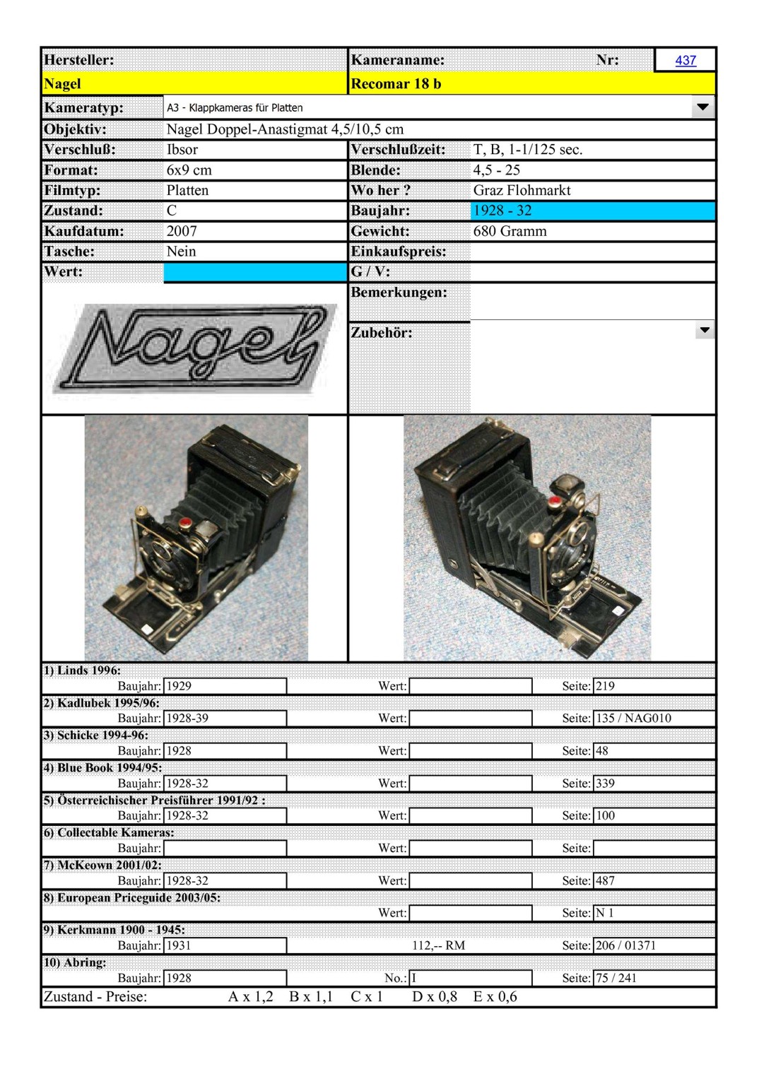 [..iIa..] Plattenkamera Nagel Recomar .