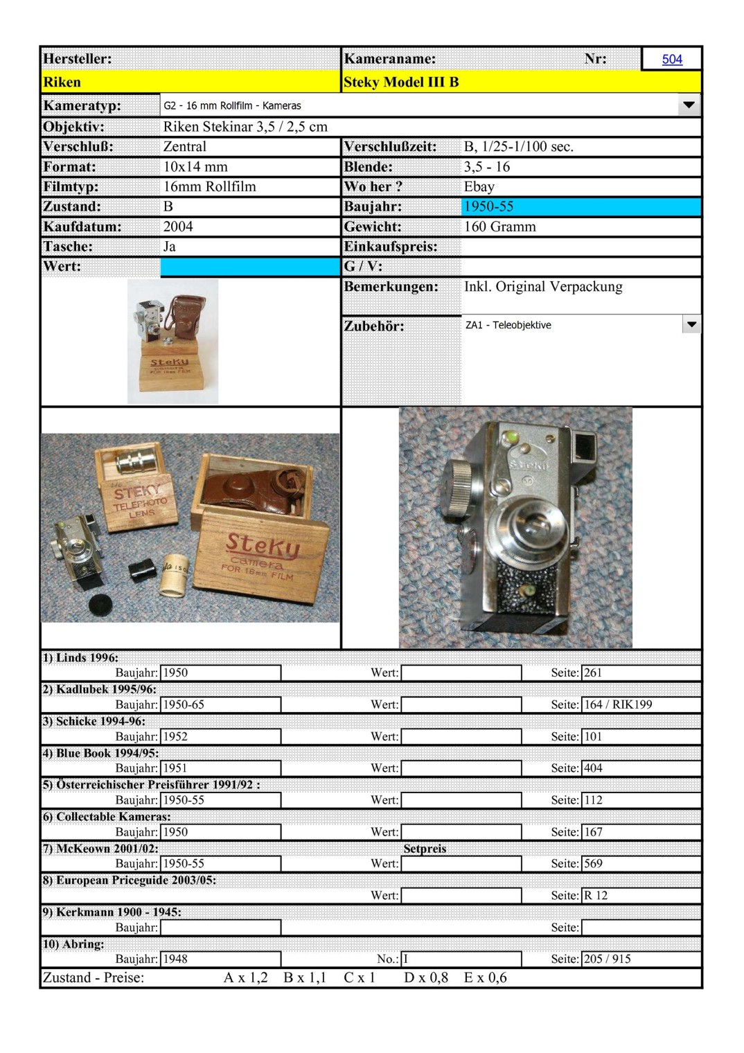bin durch Zufall mal wieder auf die Steky gestoßen, weil ich eine email-Anfrage bekommen habe. Es wurde gefragt, ob es die Kamera nur mit dem Stekinor-Anastigmat gegeben hat.