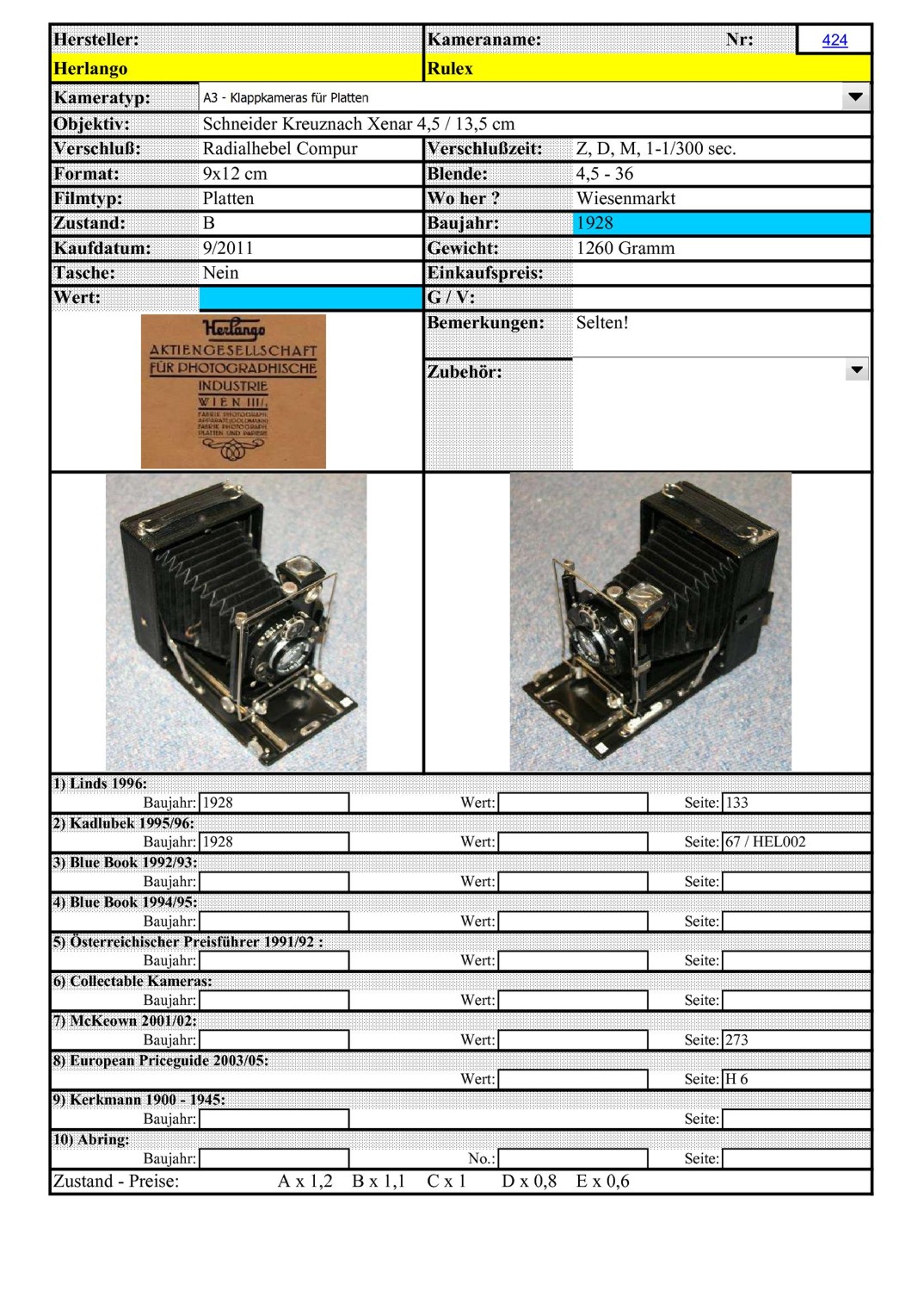 [..iIa..] Plattenkamera Herlango Rulex .
