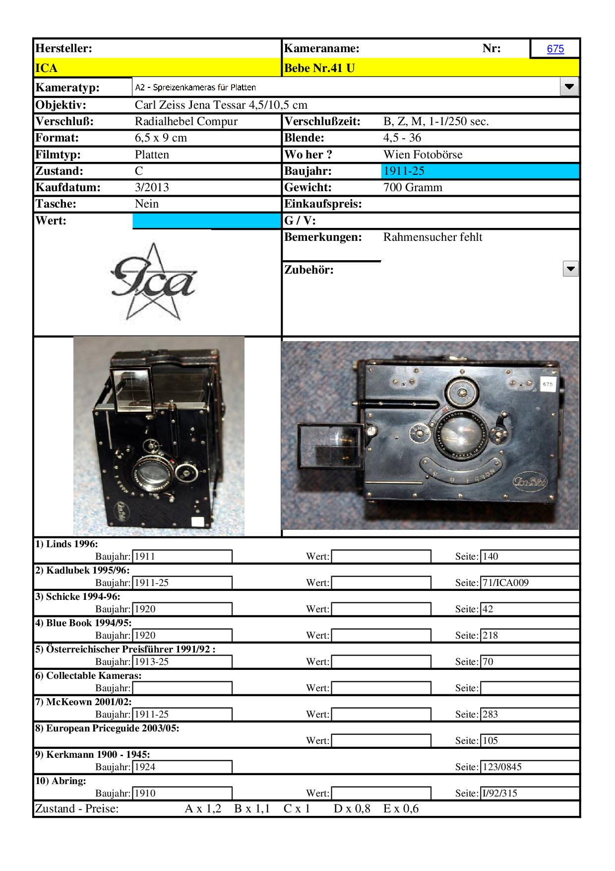 [..iIa..] Spreizen-Plattenkamera ICA Bebe 41U .