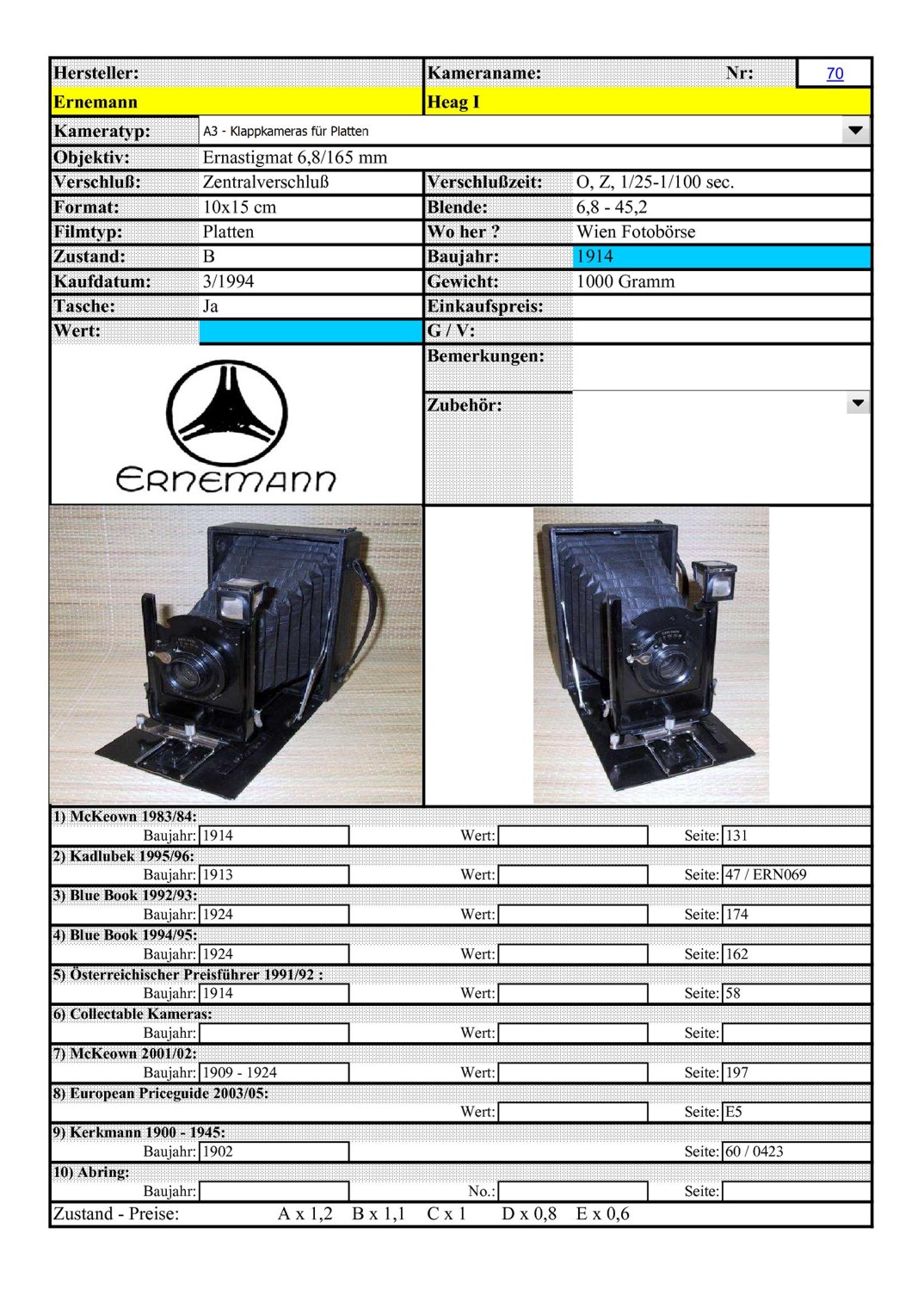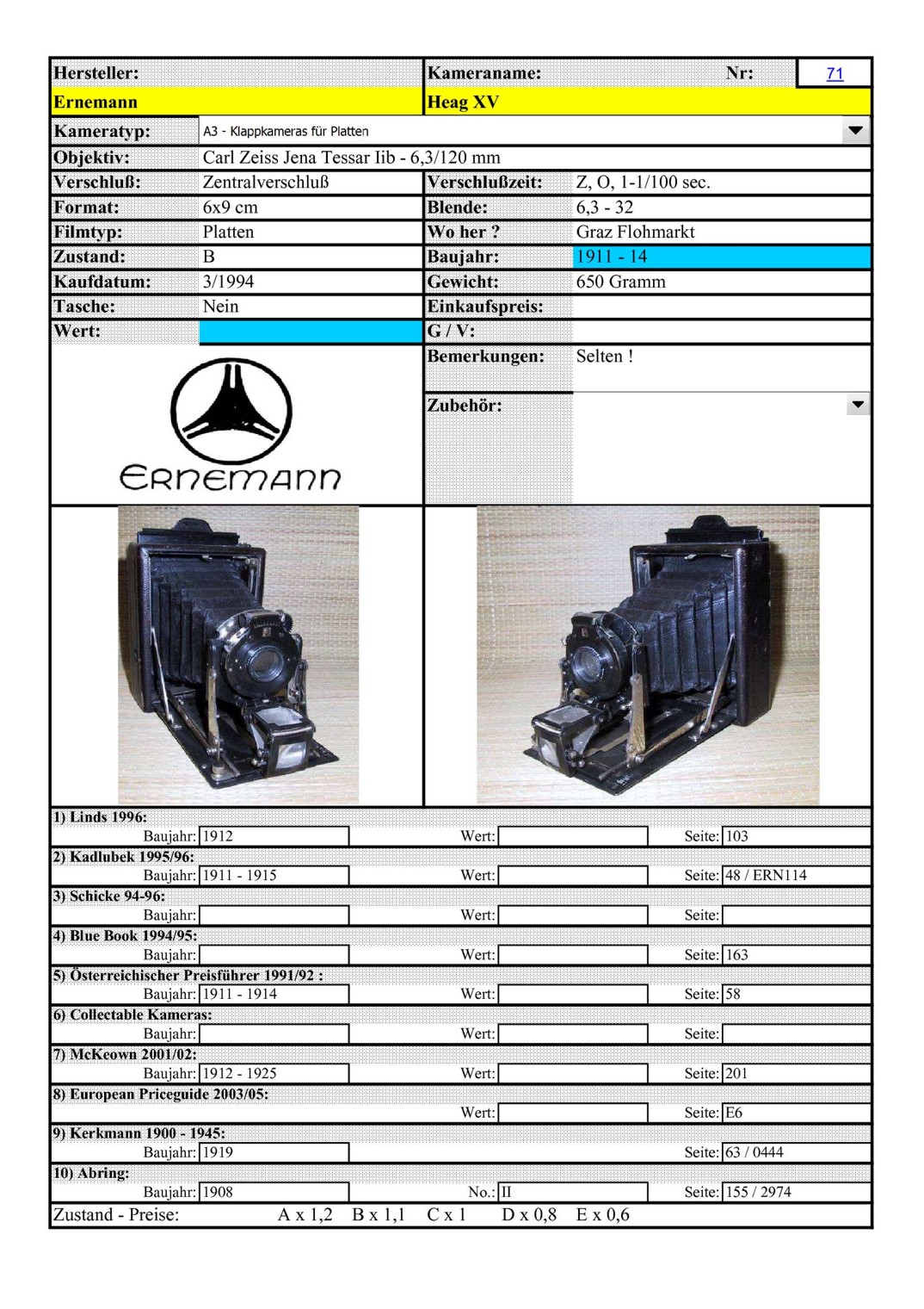 [..iIa..] Ernemann Heag I, Ernemann Heag XV (2) Plattenkameras .