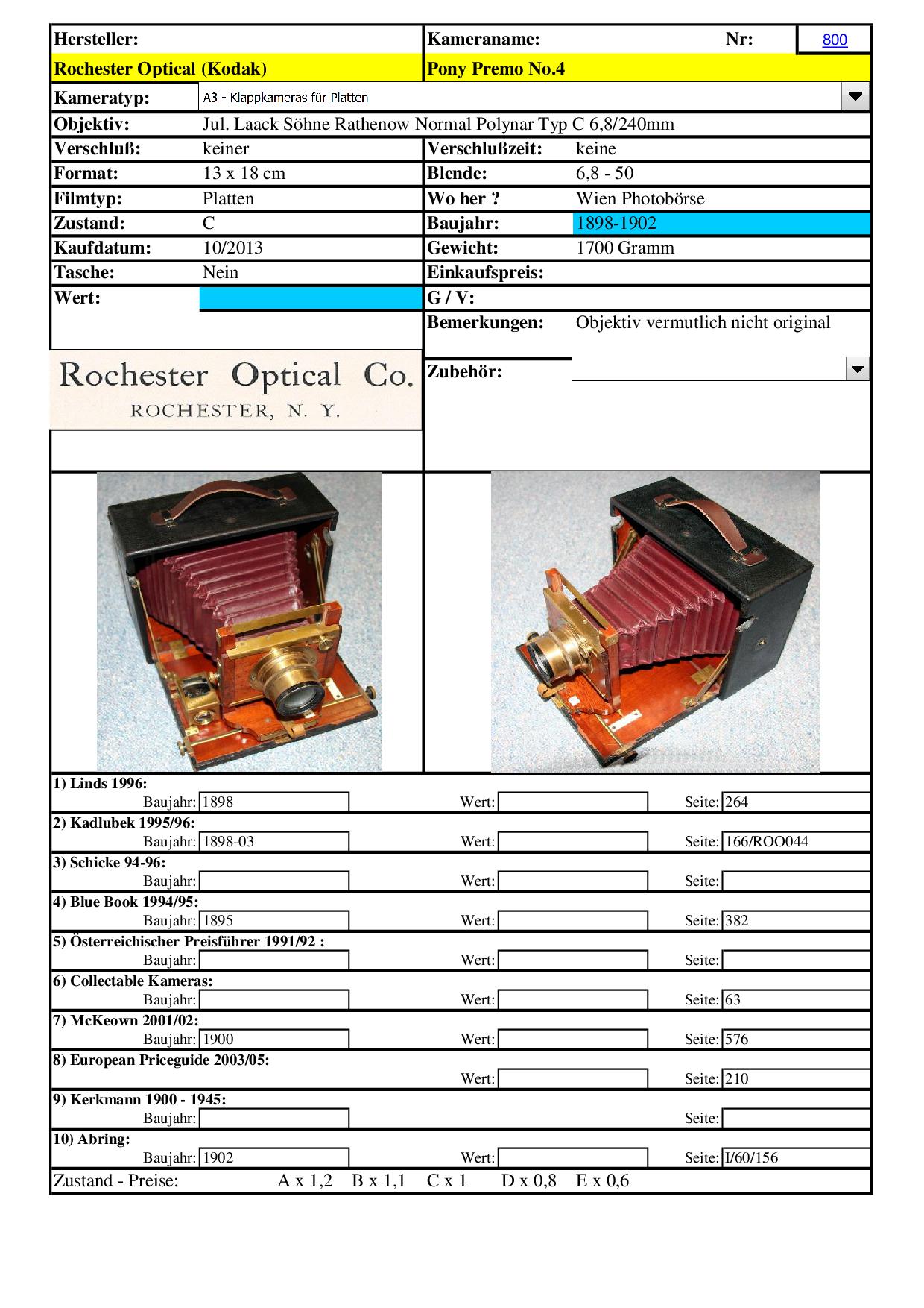 [..iIa..] Plattenkamera Rochester Pony Premo No 4. .