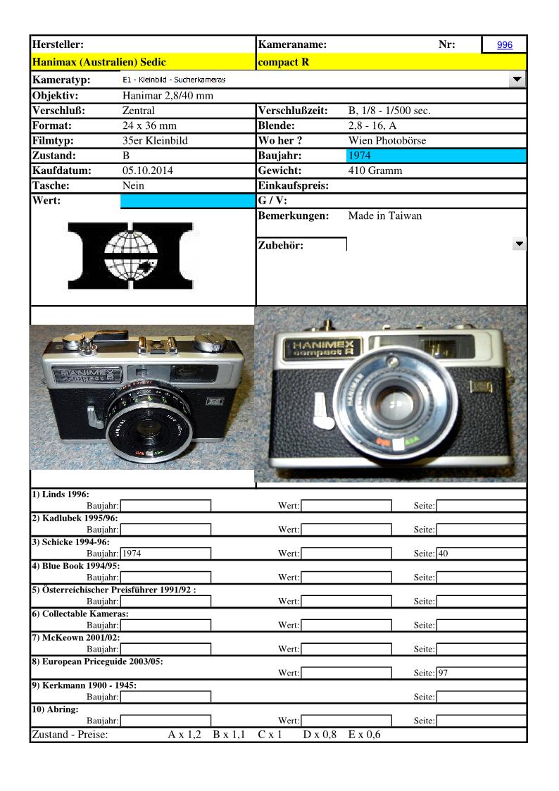 [..iIa..] Hanimex Sedic compact R