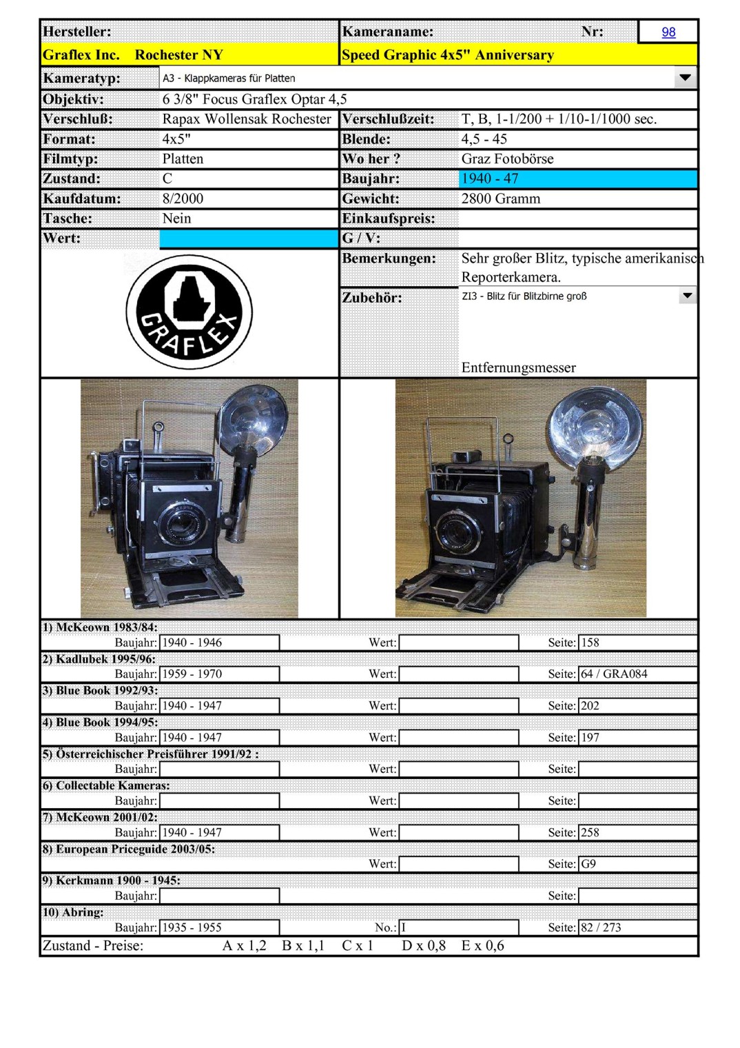 [ ..iIa.. ] Graflex Speed Graphic Anniversary Plattenkamera .