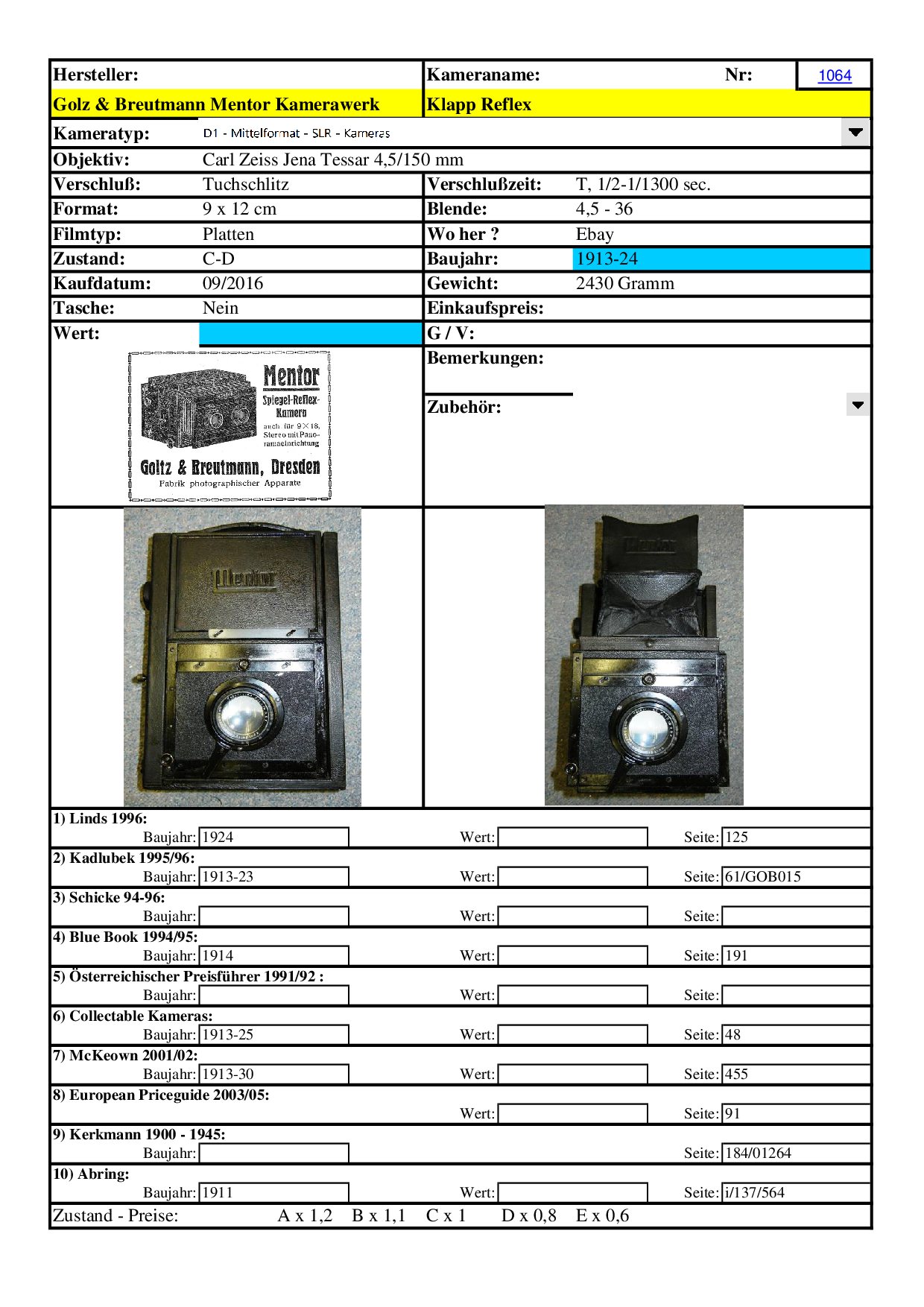 [ ..iIa.. ] Golz & Breutmann Mentor Kamerawerk Klapp Reflex