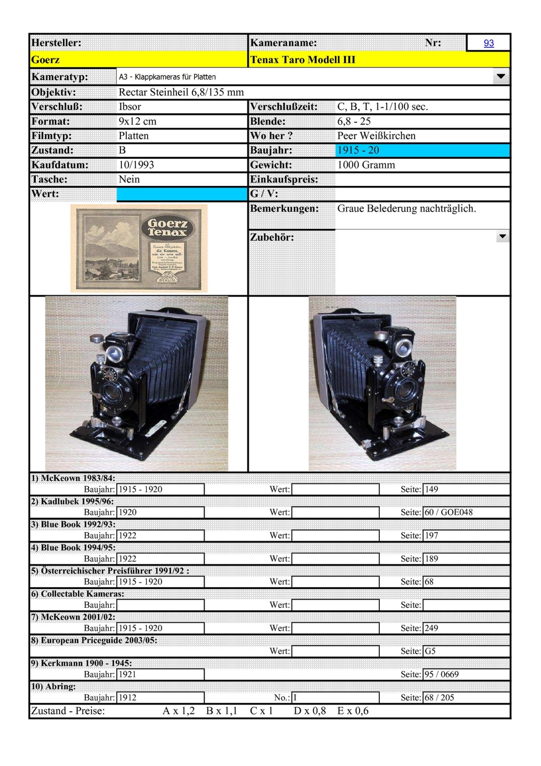 [ ..iIa.. ] Goerz Tenax Taro Modell III Plattenkamera .