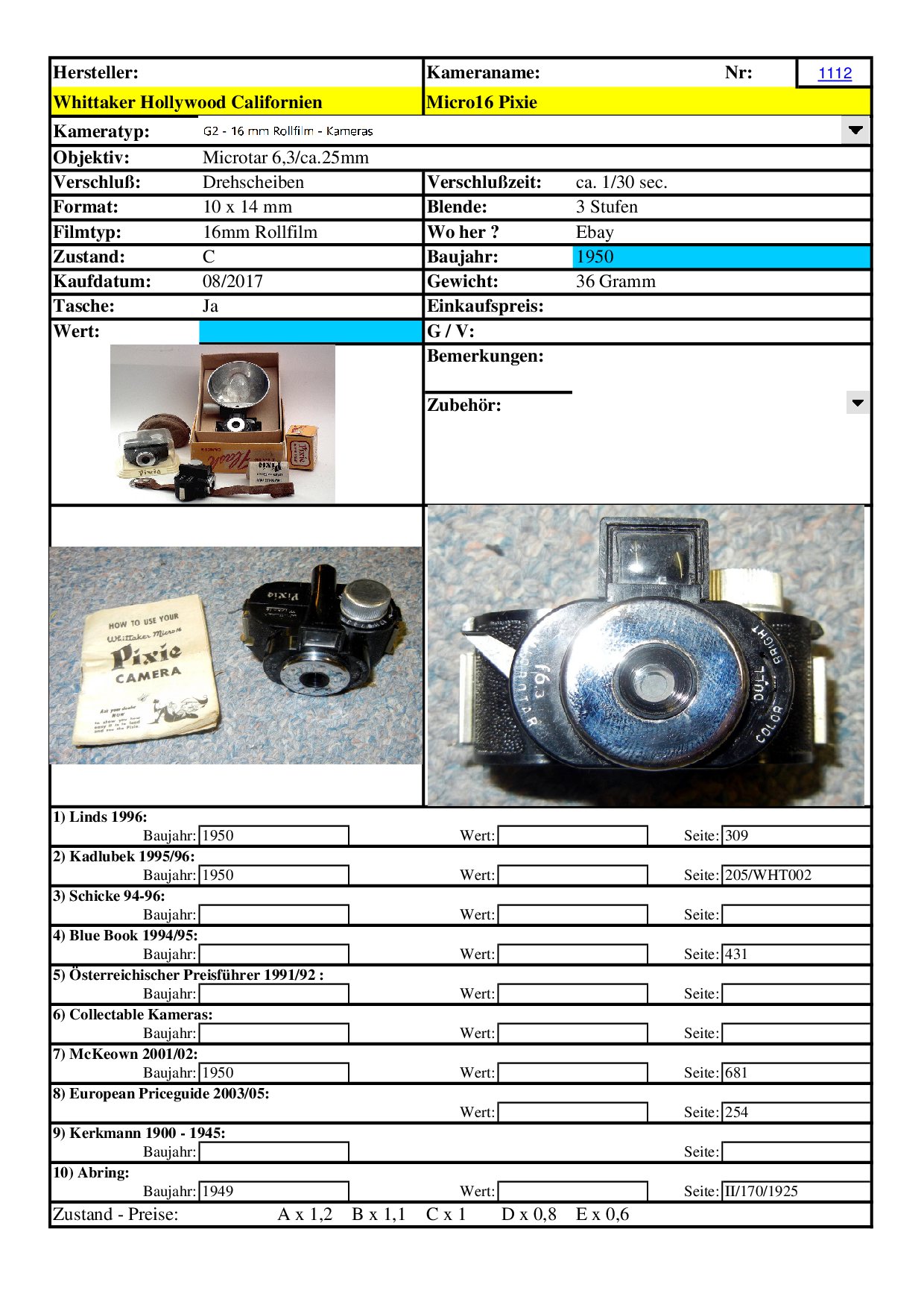 16 mm Rollfilmkamera Whittaker Micro 16 Pixie