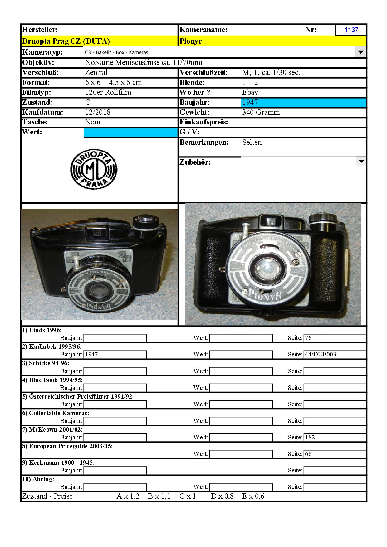 [..iIa..] Rollfilm-Sucherkamera Druopta Prag Pionyr