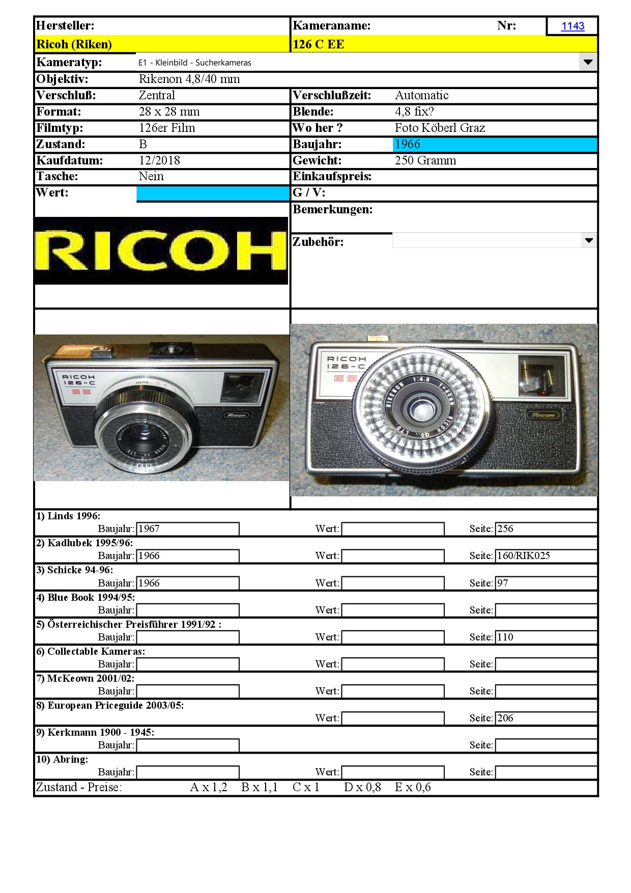 [..iIa..] Instamatic-Format-Kamera: Ricoh (Riken) 126 C EE