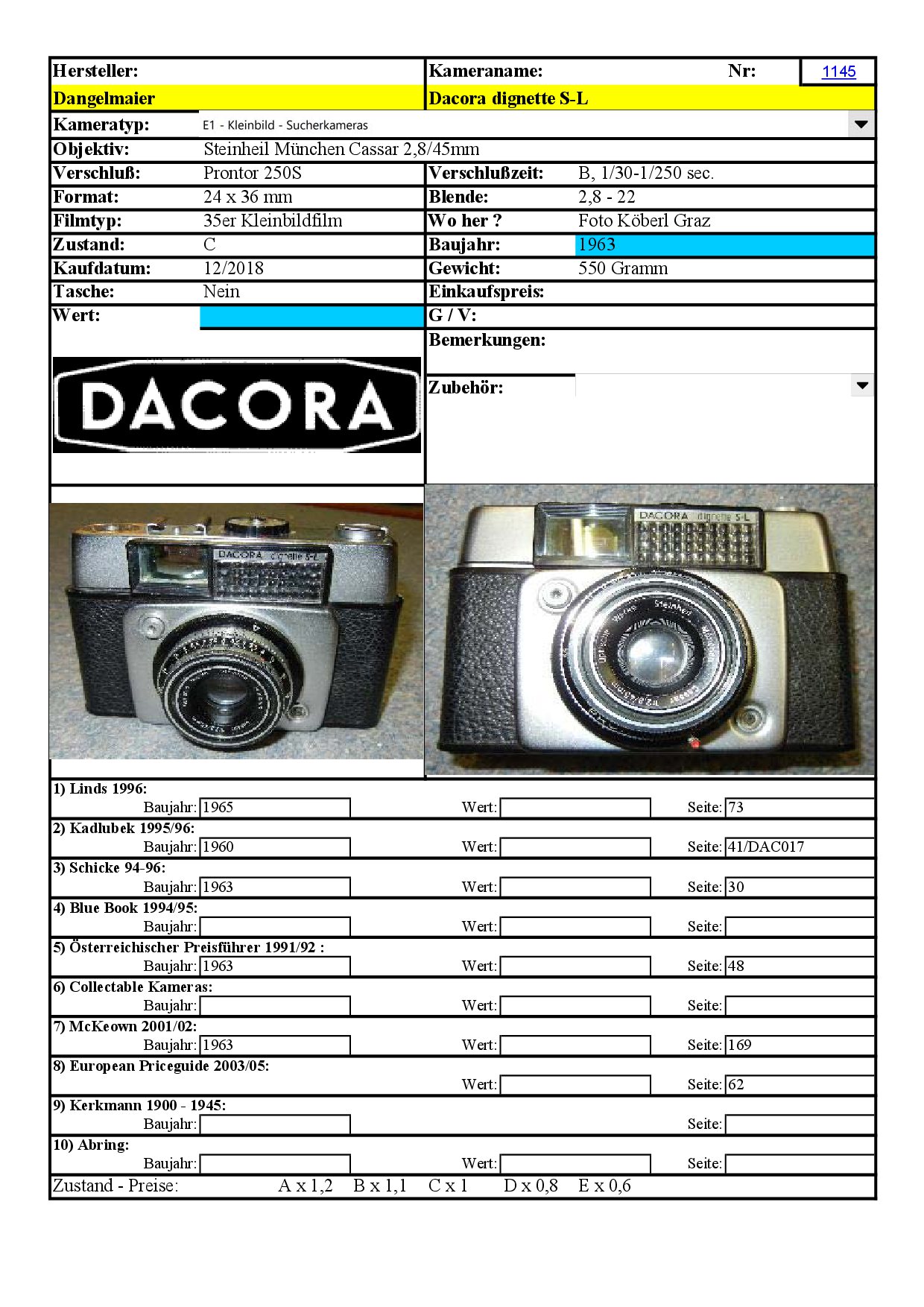 [..iIa..] Kleinbild-Sucherkamera Dangelmaier Dacora dignette S-L