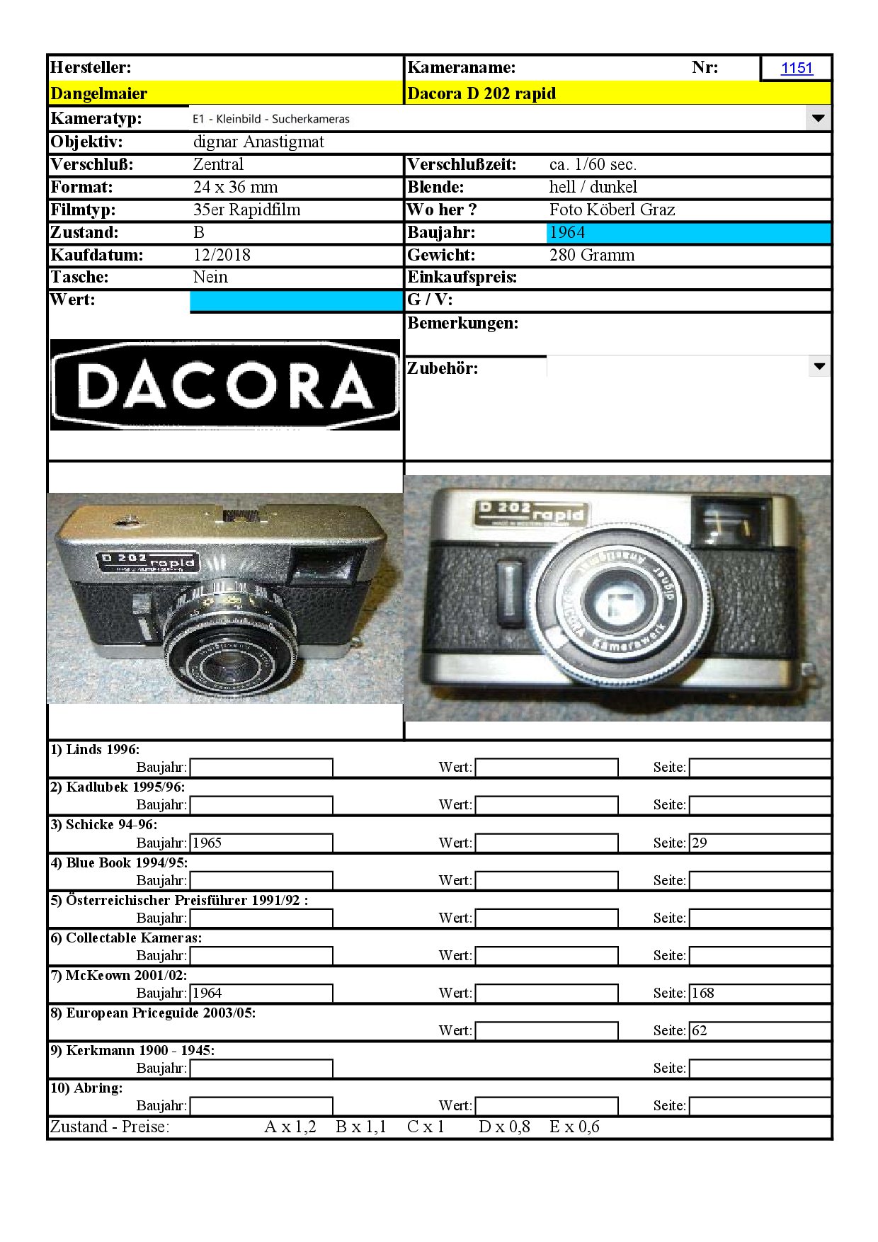 [..iIa..] Kleinbild-Sucherkamera Dangelmaier Dacora D 202 rapid