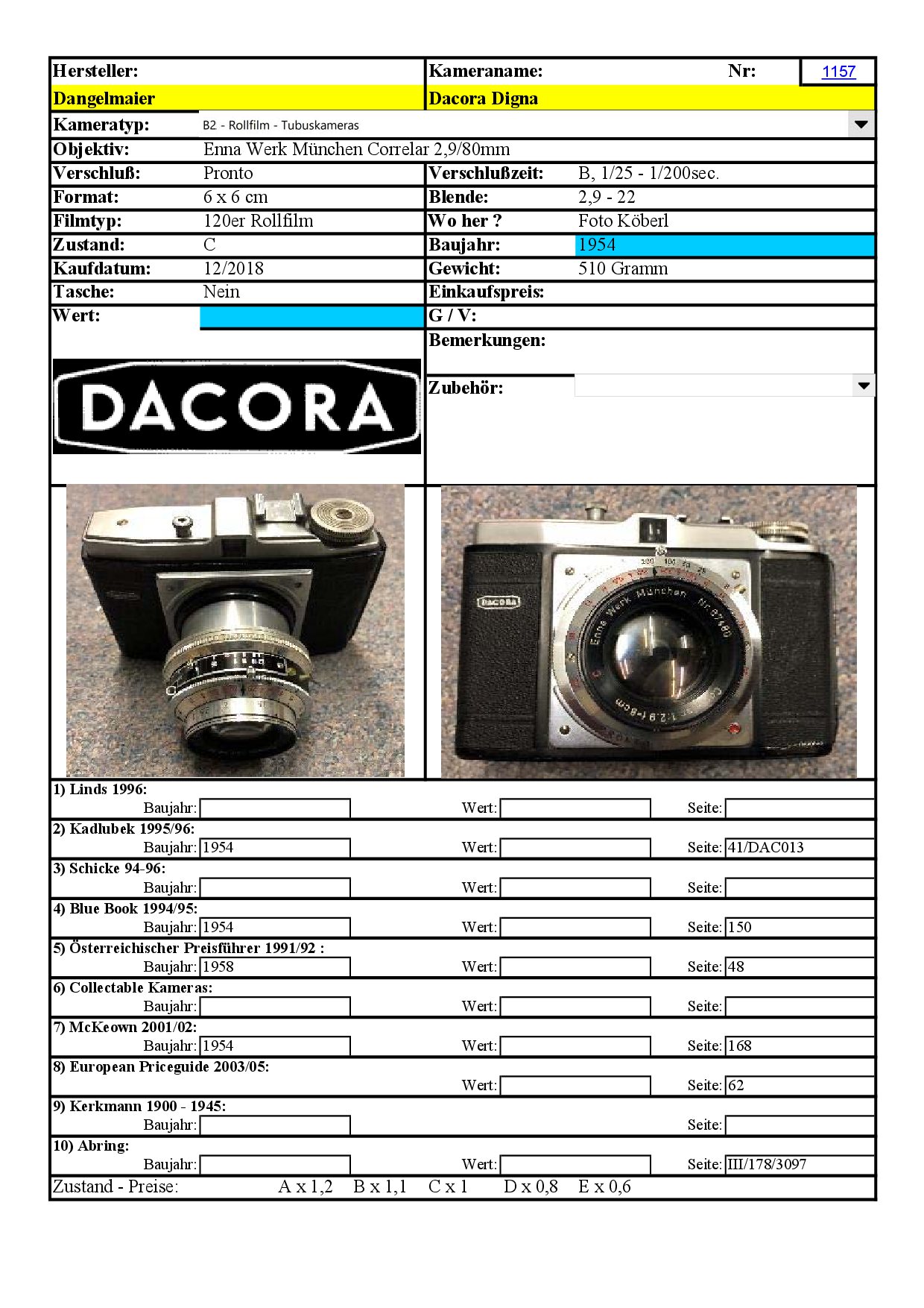 [ ..iIa.. ] Dangelmaier Dacora Digna (Rollfilm-Sucherkamera) Eintrag doppelt!