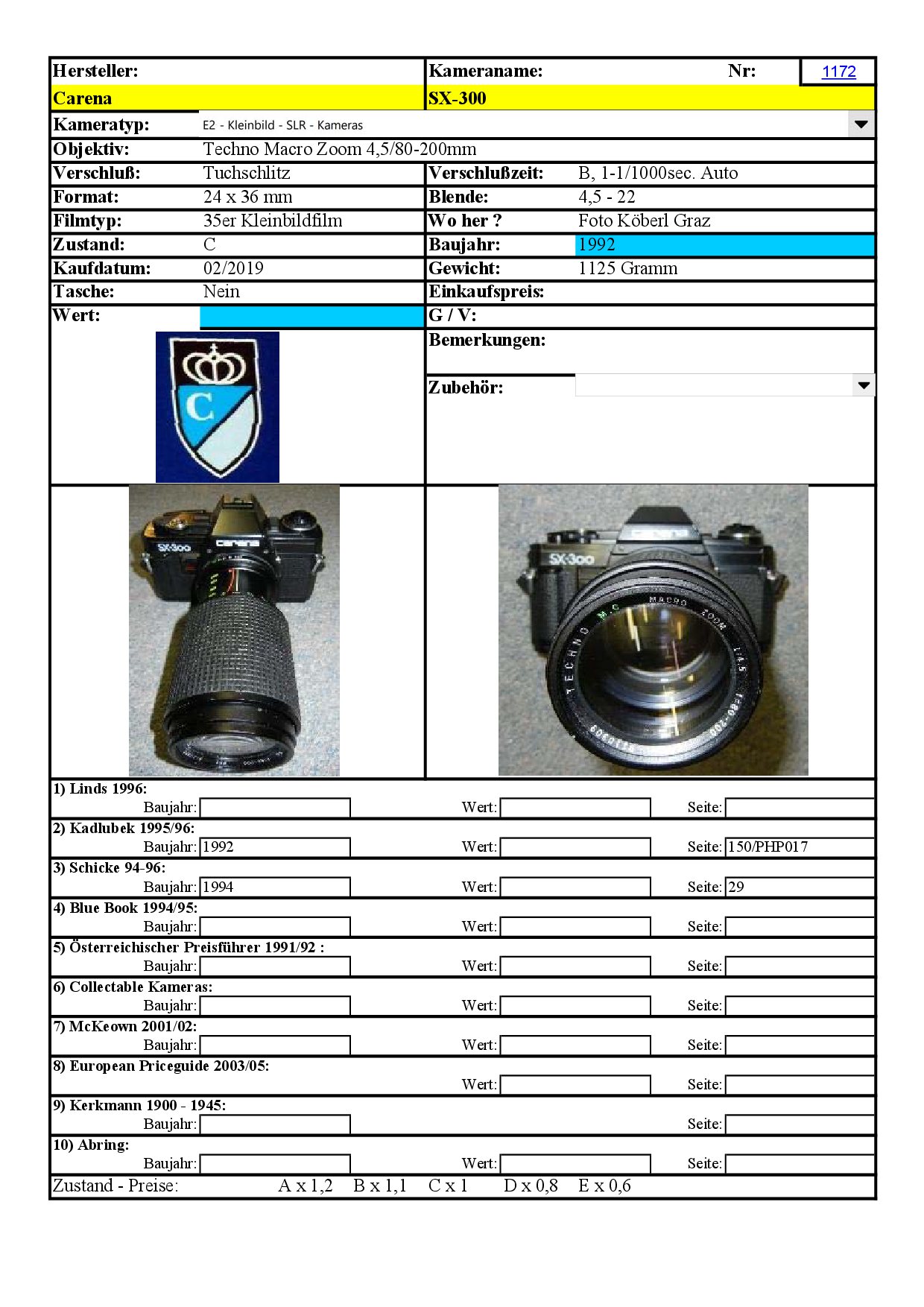 [..iIa..] Kleinbild-Kamera Carena SX-300