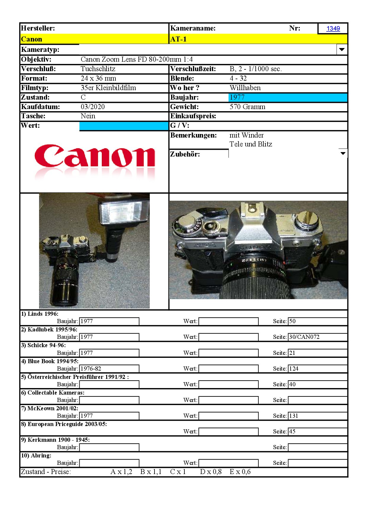 sammeln   fotografieren   Folgebeitrag   gedacht   Kameras   Analoge   Datenblatt