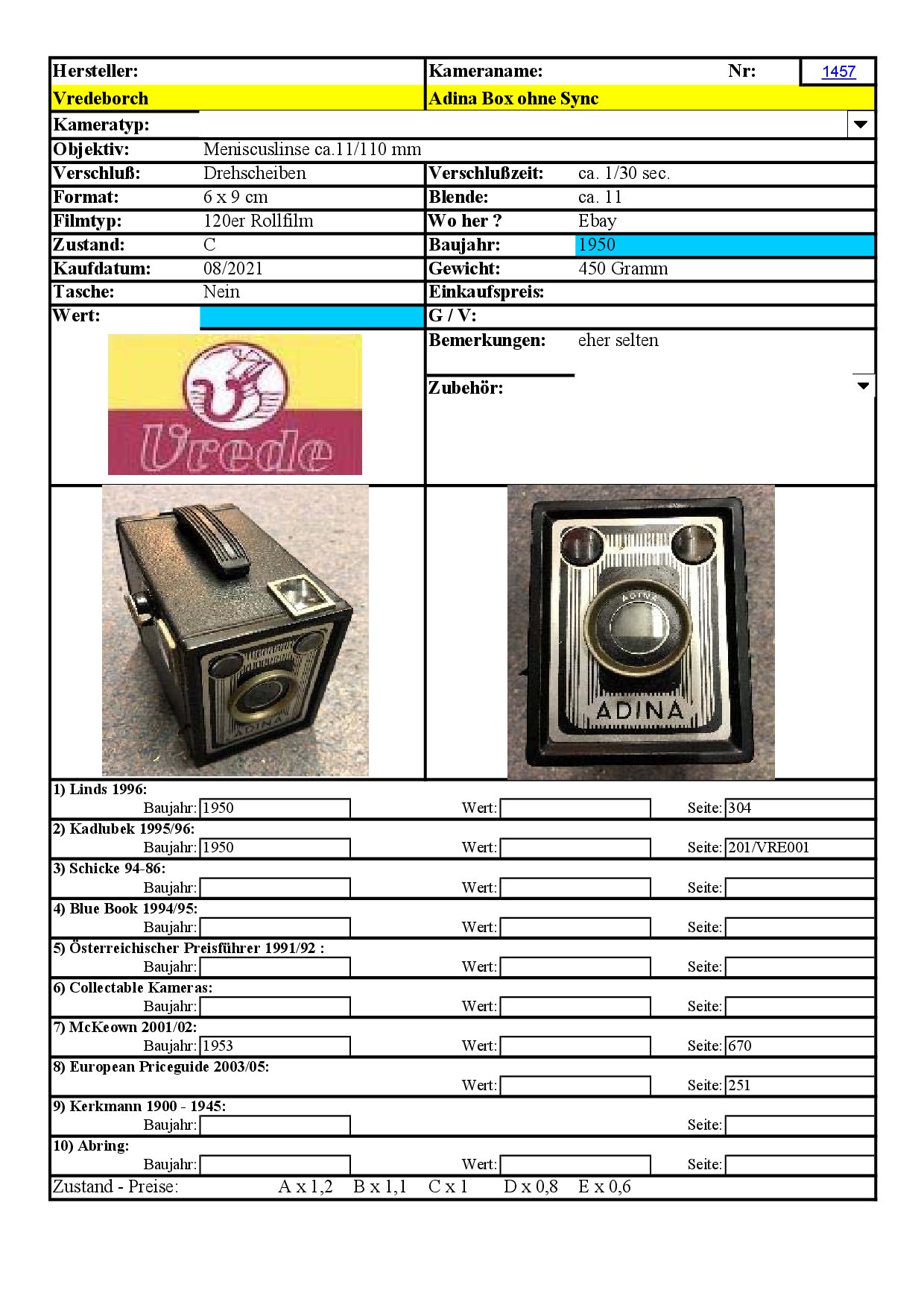 ADINA war der Hausname für Photoartikel der Firma Kaufhaus Schocken (Merkur) 1953 übernahme durch Kaufhof nach der Übernahme hieß die Photolinie dann Reporter