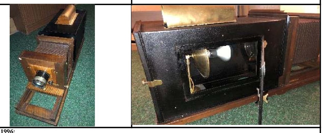 Leider kann ich heute die Bilder nicht vergrößern was sonst immer geht, darum eine "Ketzerische" Frage, war dr Projektor vor der Renovierung in einem ähnlichem Zustand??? wie gesagt kann ich die Bilder in diesem Fall nicht öffnen so ist mir nicht ganz klar was die helle Haube der Lichtkammer (Bild links) bedeuten soll und da sie geschlossen ist kann sie ja auch kein Kamin sein. Bei Bild rechts interpretiere ich eine Glühbirne aber dieser Projektor wurde doch mit Kohlebogenlampen betrieben und deshalb war doch auch der "fehlende" Kamin zwingend erforderlich. Als Großbildprojektor muss er wenn elektrisch mit einer Glühbirne von minimal um die 250 bis 500 Watt haben und diese Glühbirnen hatte ja das sogenannte Goliath Gewinde E 40 das auf dem Bild scheint aber ein kleineres zu sein.