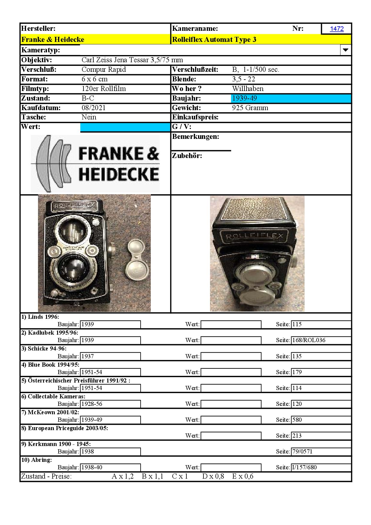 Kameras   Heidecke   Automat   sammeln   gedacht   fotografieren   Analoge   Rolleiflex