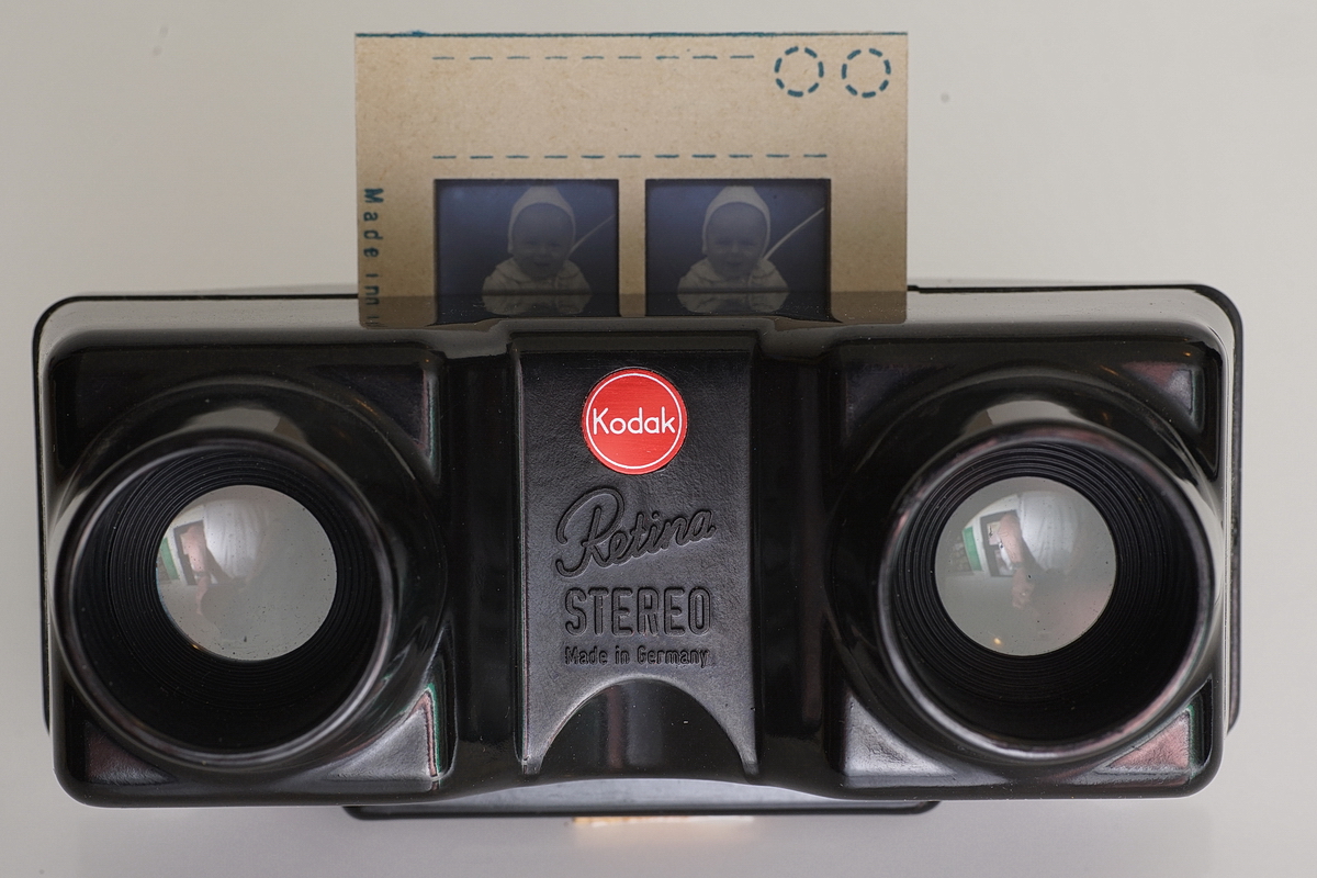 Zum Stereo Vorsatz gehören auch ein Kodak Stereo Betrachter und die Kodak Stereo-Papprähmchen.