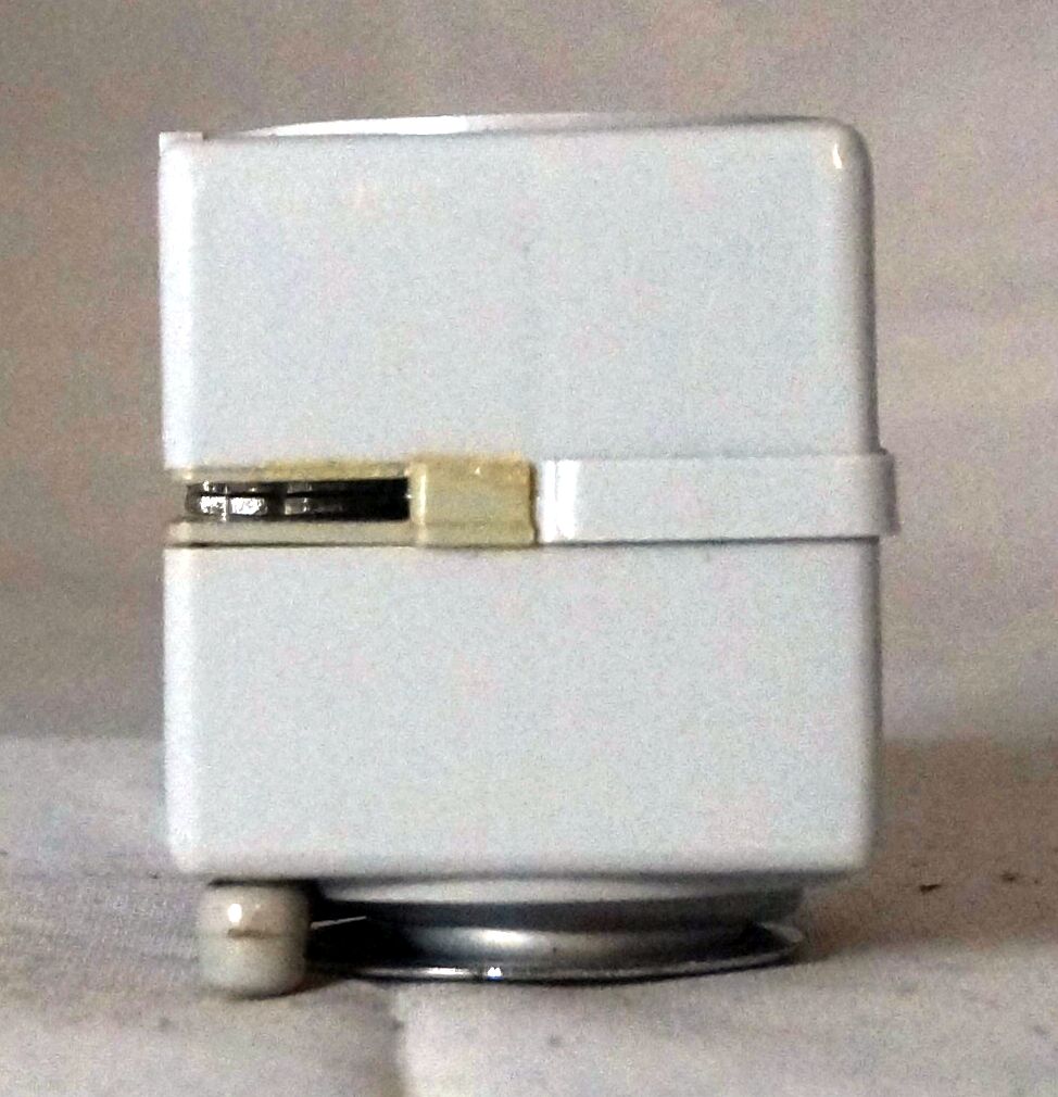 Hallo, heute stelle ich mal ein Zubehörteil vor, es handelt sich dabei um einen kleinen Blitz für AG Birnchen, zur Batterie kann ich leider nichts sagen, da keine drin war, der größe des Faches nach würde ich aber auf IEC 10F15 tippen. Hersteller kann ich leider keinen erkennen, auf dem Blitz selbst steht nur Kobold und auf der Tasche noch Made in Germany. Ich habe den Blitz aus England, und tatsächlich findet man auch eher im Ausland Bilder dazu, daher wurde er vieleicht für den Export produziert. Herstellungsdatum kann ich natürlich keines nennen, aber ich würde in Zeitmässig bei Agfa Tully und Isi einordnen. Der Fuß lässt sich ganz einklappen, und hat zwei Stellungen, einmal nach vorn und einmal nach oben. Das Kabel für die Synchronbuchse lässt sich bequem aufrollen, insgesamt also quadratisch, praktisch gut, nur keine Schokolade. Allerdings erfolgt der Auswurf der verbrauchten Birnchen sehr schwungvoll, ich denke aber das man das, nach dem ersten mal wenn einem eine heisse Birne entgegenkam verinnerlich hat.