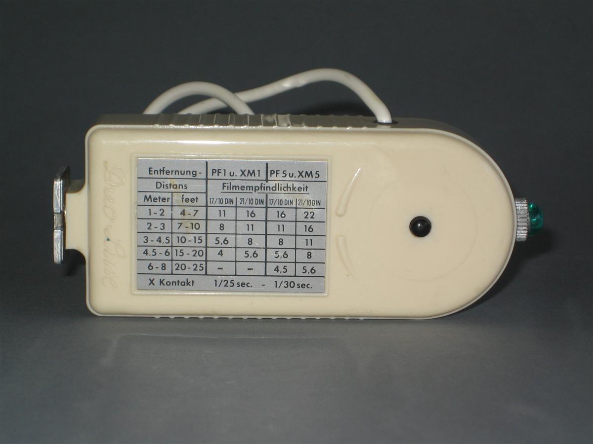 obiges Blitzgerät der Firma Duo-Lux gab es auch noch als Duo-Lux Popular. Es unterschied sich vom gezeigten Blitz durch das Fehlen der Kontroll-Lampe sowie einen festen Reflektor (also kein Fächerreflektor), der ebenfalls abnehmbar war. Leider besitze ich kein Bild von diesem Modell, jedoch liefert die Bildsuche im Netz entsprechendes Material.