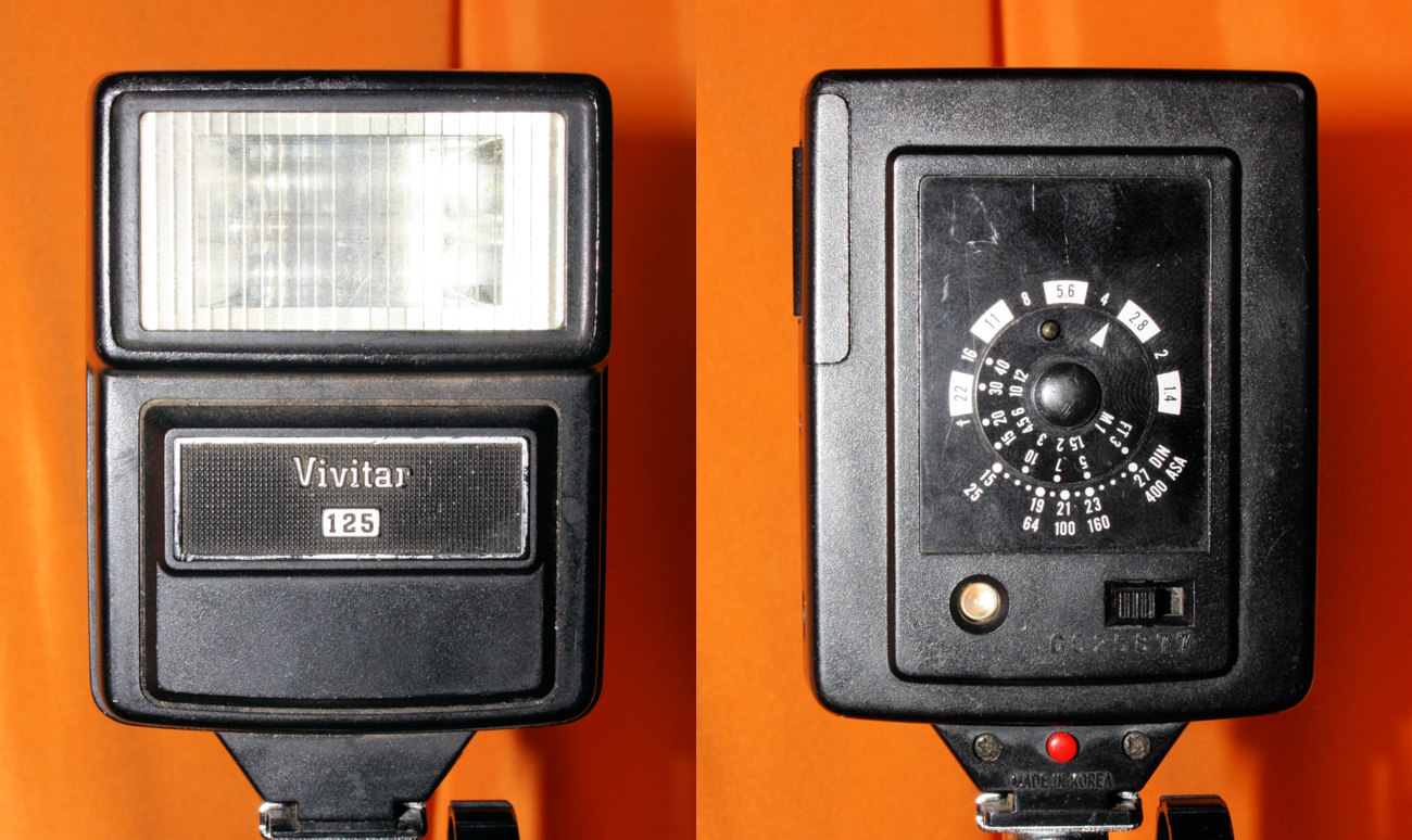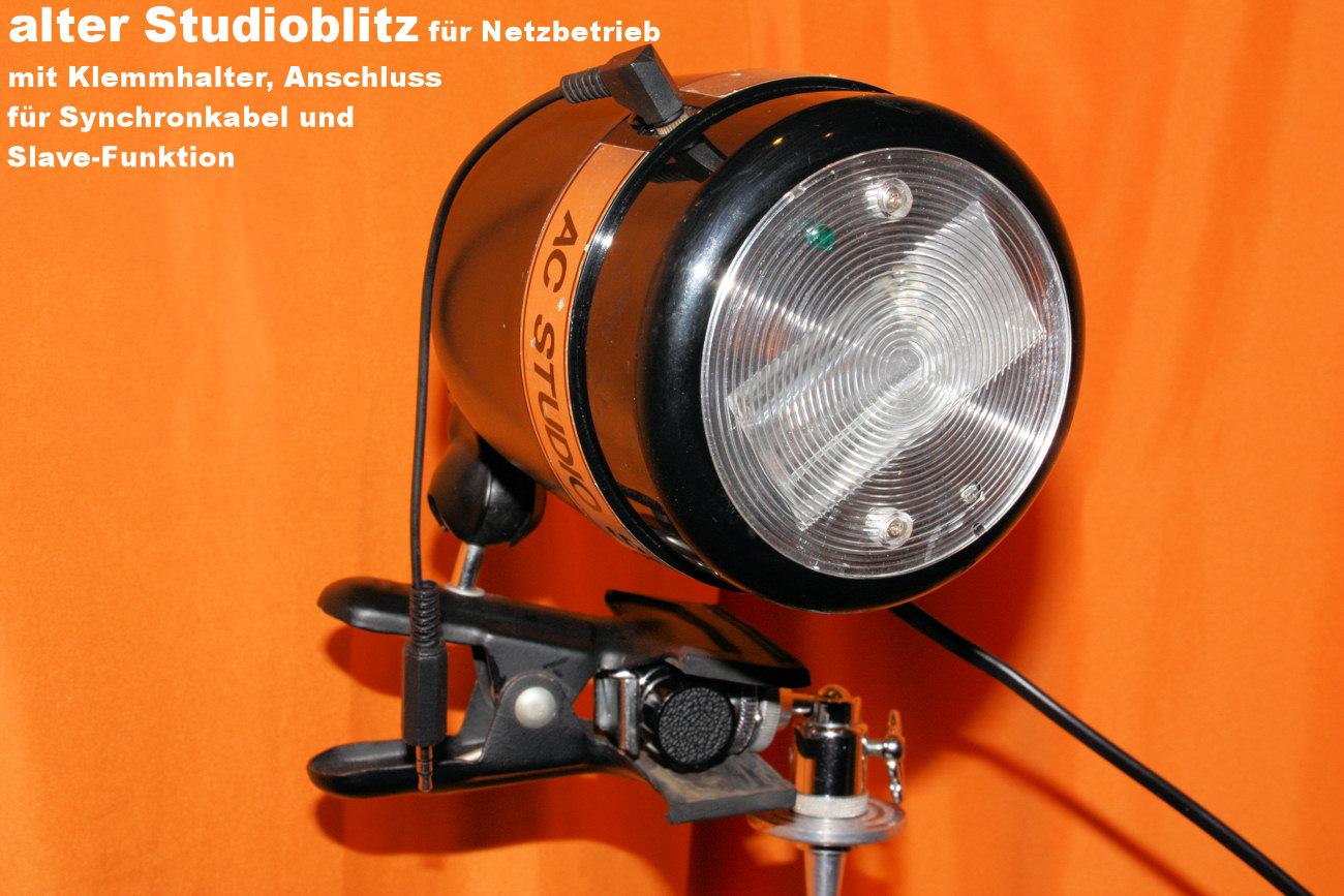 Zur Wahl stehen mir zur Zeit dieser alte Studioblitz, welcher sich wahlweise per Synchronkabel von der Kamera oder mit der eingebauten Fotozelle als Sklavenblitz auslösen lässt: