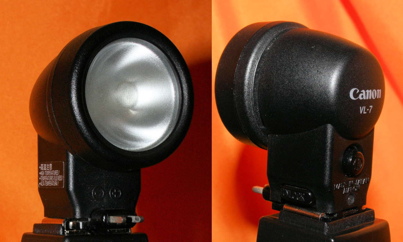 und eine auf Akkubetrieb umgebaute Canon VL-7 Filmleuchte von einer Videokamera. Diese wurde mit einer 12 V/3 Watt SMD LED Xenonleuchte auf eine Helligkeit gebracht, die fast einer 100 Watt-Birne entspricht ohne warm zu werden: