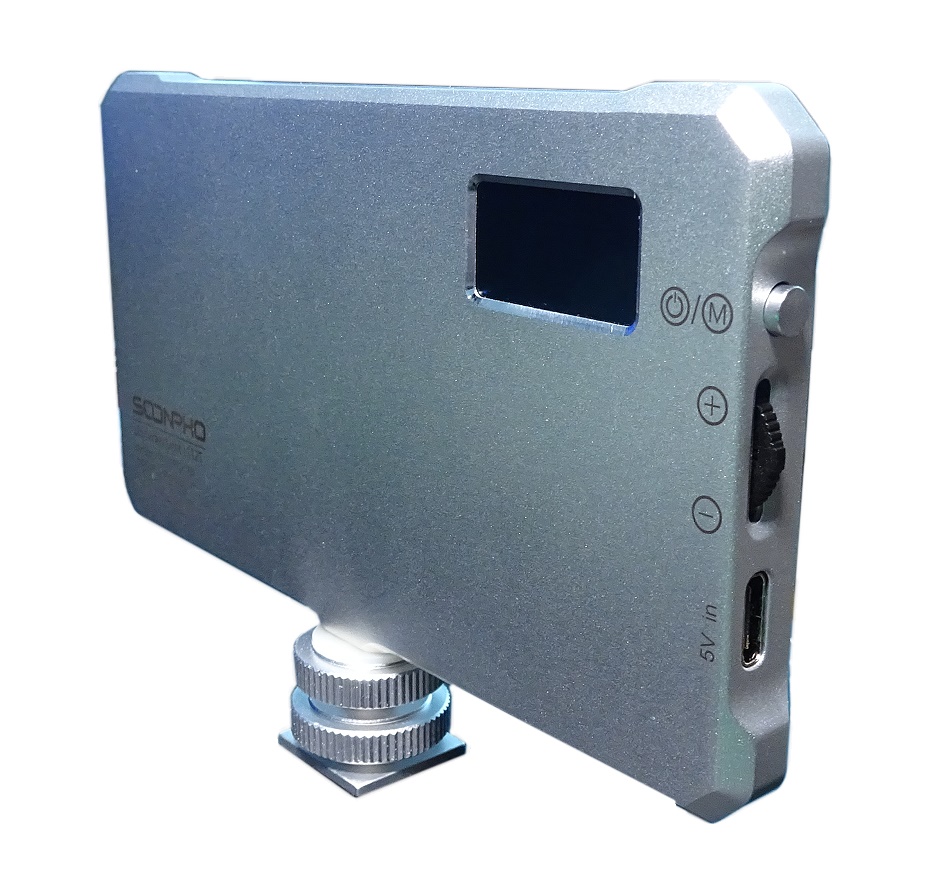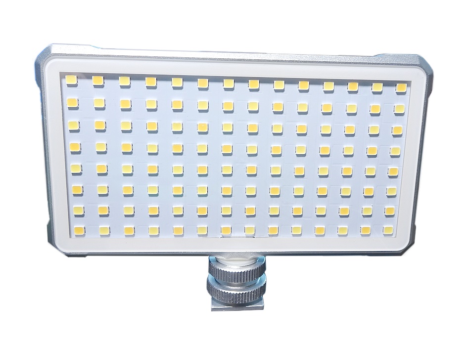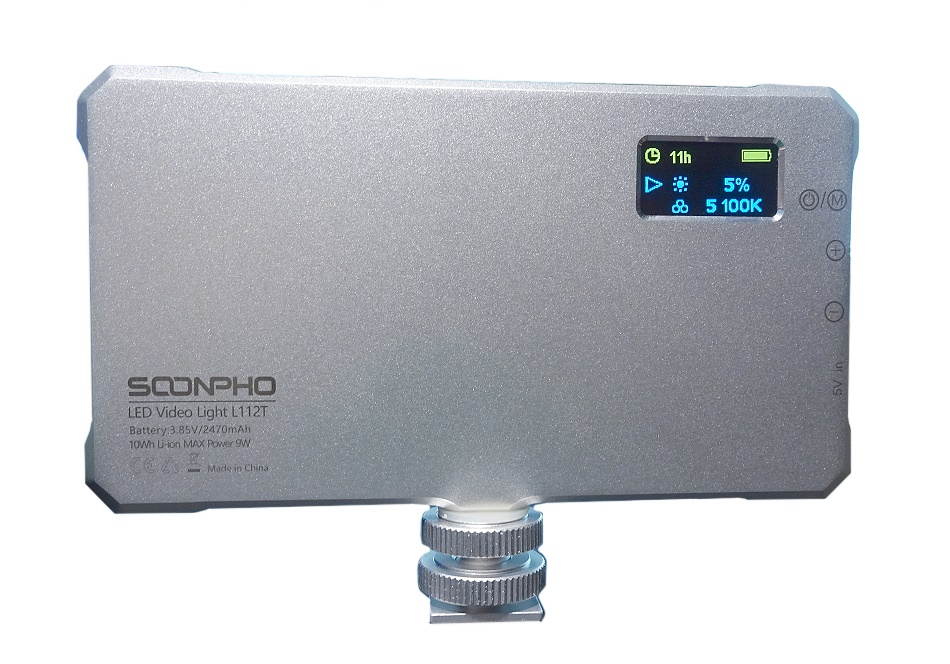 Zurück zu dieser Fotoleuchte: Es ist ein Li-Akku mit 2470mAh angegeben ist, aufladbar über USB-C. Die Helligkeit kann in 5% Schritten verändert werden, die Farbtemperatur von 3200 - 5600 K. 112 LEDs. Auf einem kleinen Farbdisplay wird auch die jeweils geschätzte Leuchtzeit angegeben (in Abhängigkeit von der Lichtstärke). Es gibt ein Diffusor-Aufsatz, 1 Stativadapter und eine Bereitschaftstasche.