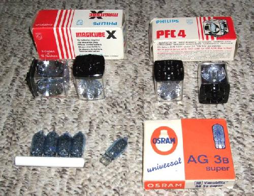 Oben rechts:Flip Flash II von Osram mit 8 Blitzbirnen.