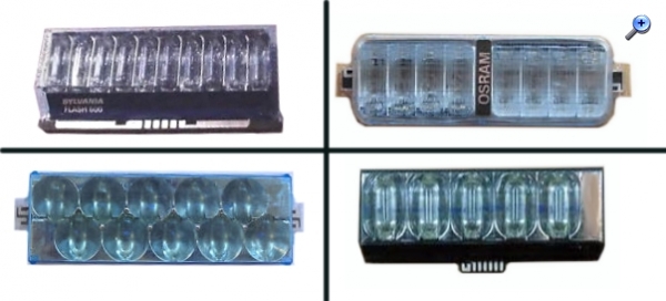 Es gab auch weitere Konstruktionen, die untereinander nicht kompatibel waren. So gab es Blitzbirnen-Sets mit 2 x 5 Birnchen nebeneinander, Set umsteckbar, um die Rückseiten-Serie nutzen zu können.