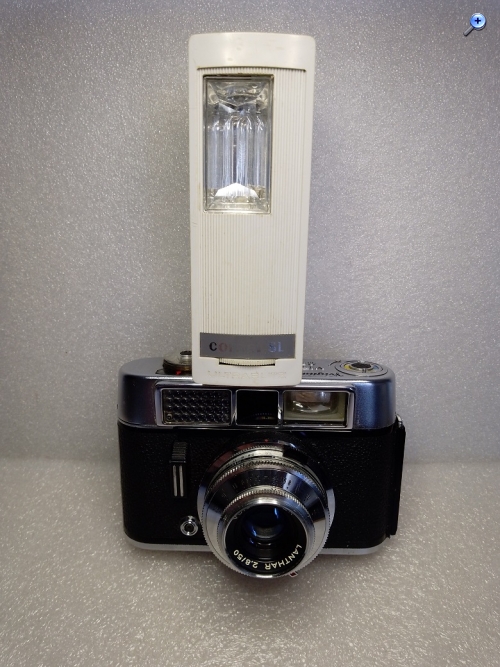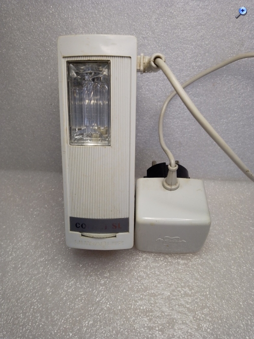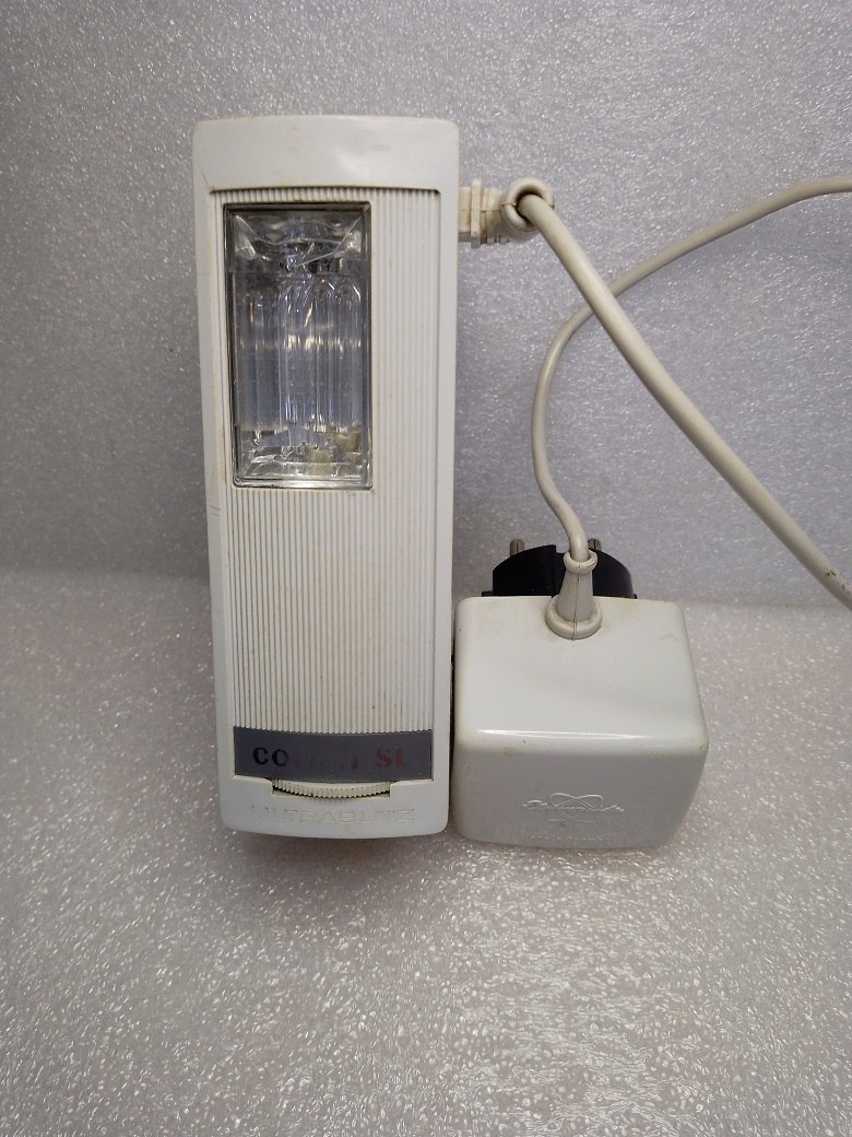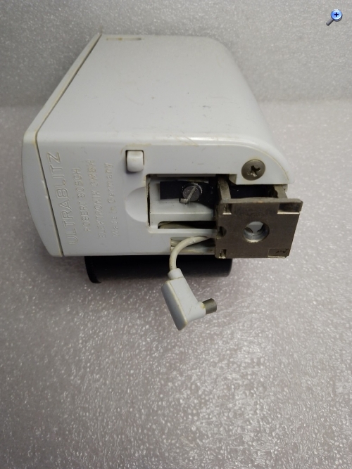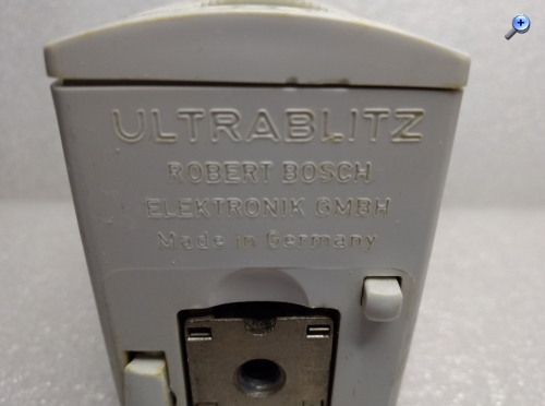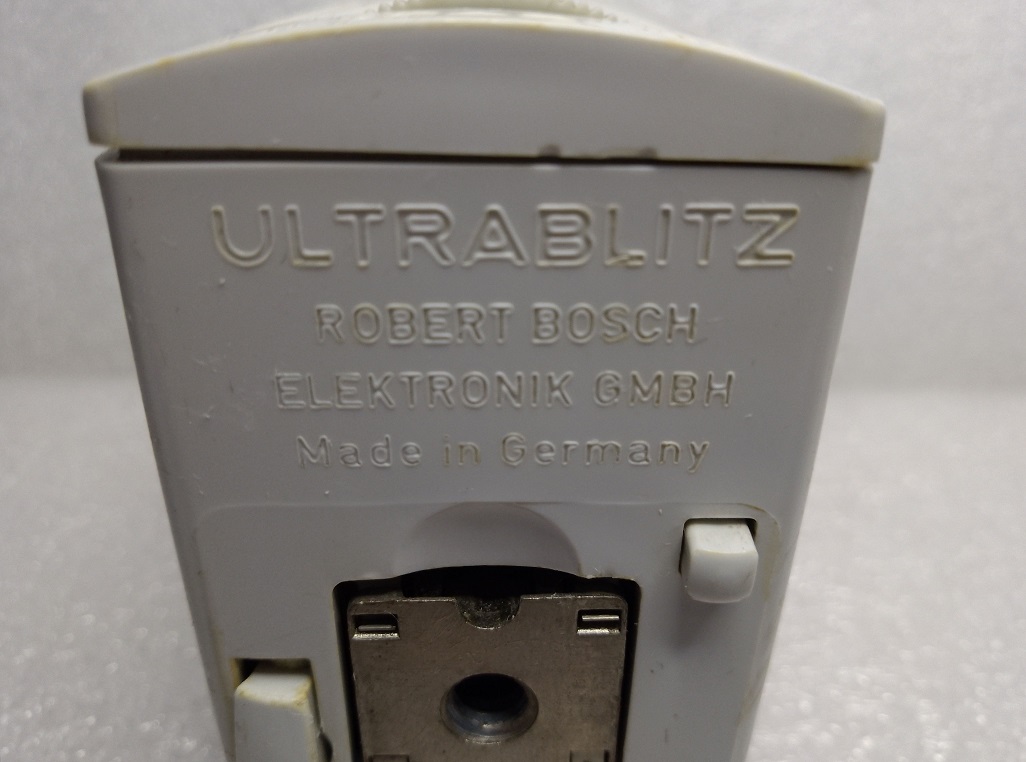Das Blitzgerät kam 1962 auf den Markt und wurde von der Robert Bosch Elektrotechnik GmbH hergestellt. Die Spannungsversorgung erfolgt über einen eingebauten Akku der mit einem mitgelieferten Ladegerät (einstellbar auf 110, 125 und 220 Volt) aufgeladen werden kann. Über Ladezeit und Kontrolle der Ladung am Blitz oder Netzteil konnte ich leider keine Angaben finden. Auf der Oberseite des Blitzes findet sich ein Schiebeschalter der wahlweise eine Wellenlinie oder den Buchstaben "B" sichtbar werden lässt. Vermutlich wird damit der Lade- oder Blitzmodus eingeschaltet. Weiterhin finden sich auf der Oberseite ein Blendenrechner und ein Plexiglasprisma (Kontrolleuchte?) Laut Werbung sind mit einer vollen Akkuladung 70 - 80 Blitze mit einer Folgezeit von 8 - 12 Sekunden möglich. Die Leitzahl wird mit 16 - 20 für Color- und Schwarz-Weißfilme mit 18 DIN angegeben. Der Kontakt zur Kamera wird mittels Kabel hergestellt. Der ausklappbare Sockel verfügt nicht über einen Mittenkontakt. Unklar sind 1. das Drehrad unterhalb des Typenschildes auf der Vorderseite und 2. der Taster auf der Unterseite des Gerätes (rechts, unterhalb des Schriftzuges Robert Bosch...........). Der Neupreis, inkl. Ladegerät und Tragband, betrug 1962 186,-- DM