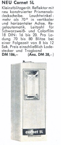 zu diesem Elektronenblitzgerät aus dem Hause Bosch findet man im Internet wenige Informationen. Neben einigen Verkaufsanzeigen bei den "üblichen Verdächtigen" finden sich nur auf der Seite https://www.clarus.ch/fotosysteme/fototechnikfirmadetail.cfm?xfirma=95 und in der Fotokataloge-Abteilung des HiFi Archives https://www.hifi-archiv.info/Foto%20und%20Filmkameras/1963%20Foto-Kino%20Verkaufskatalog/048.jpg einige Angaben.