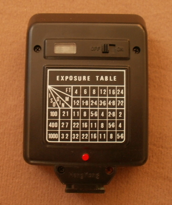 Blitzgerät   Blitzschuh   Belichtungstabelle   Prüftaster   Leitzahl   Synchronkabel   Grüße   Batterien